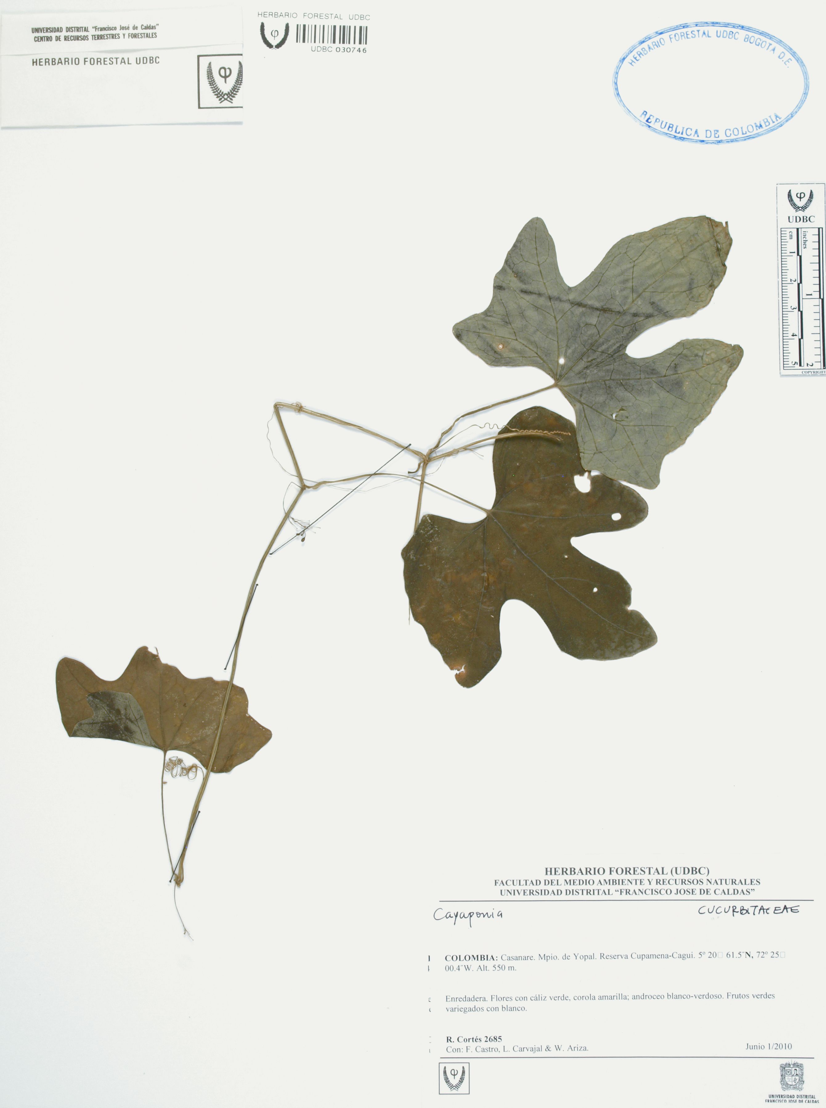 Fotografía del ejemplar Cortés-B., R. 2685, determinado como Cayaponia sp.
