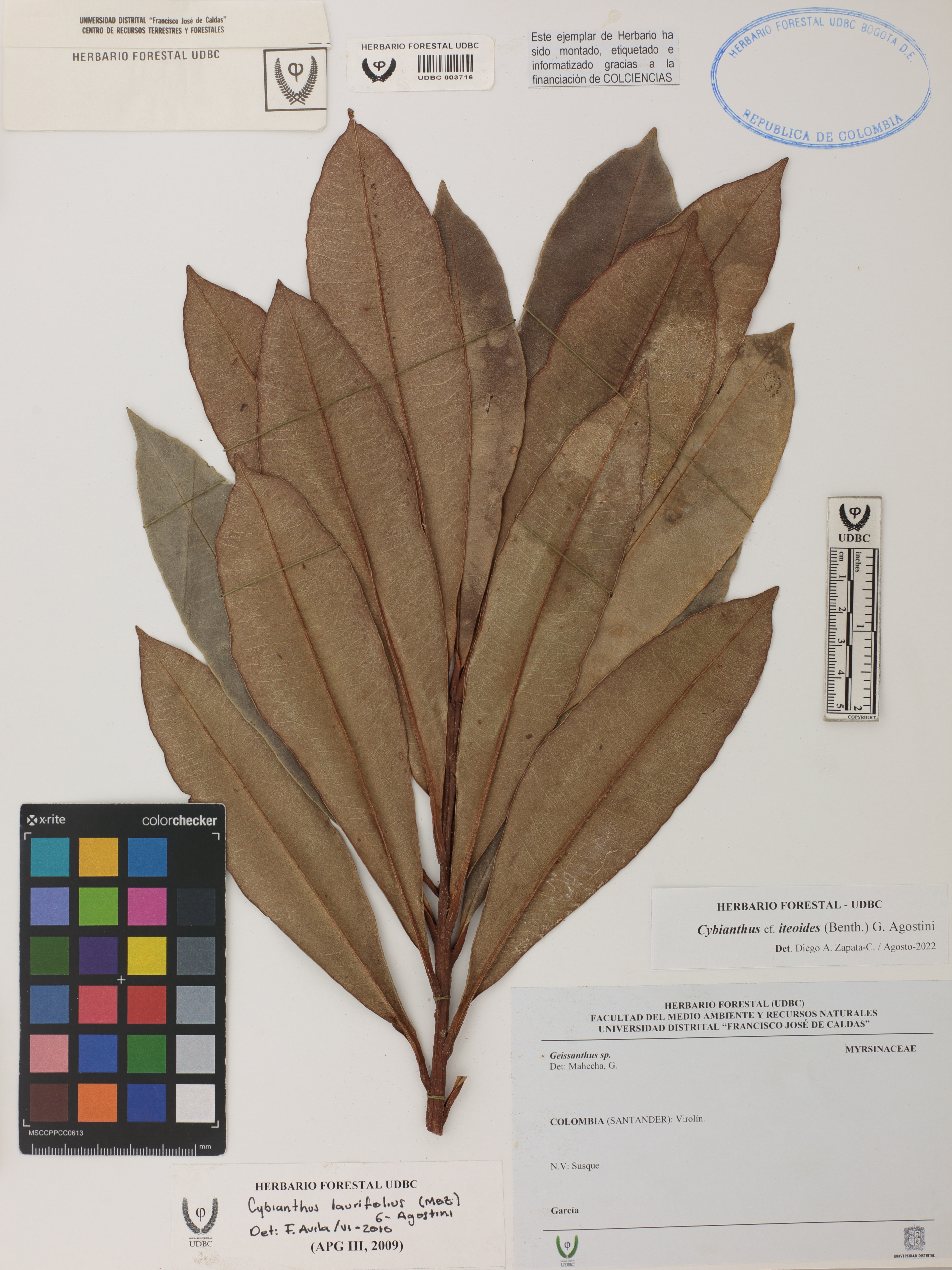 Fotografía del ejemplar SD, determinado como Cybianthus iteoides en el año 2022