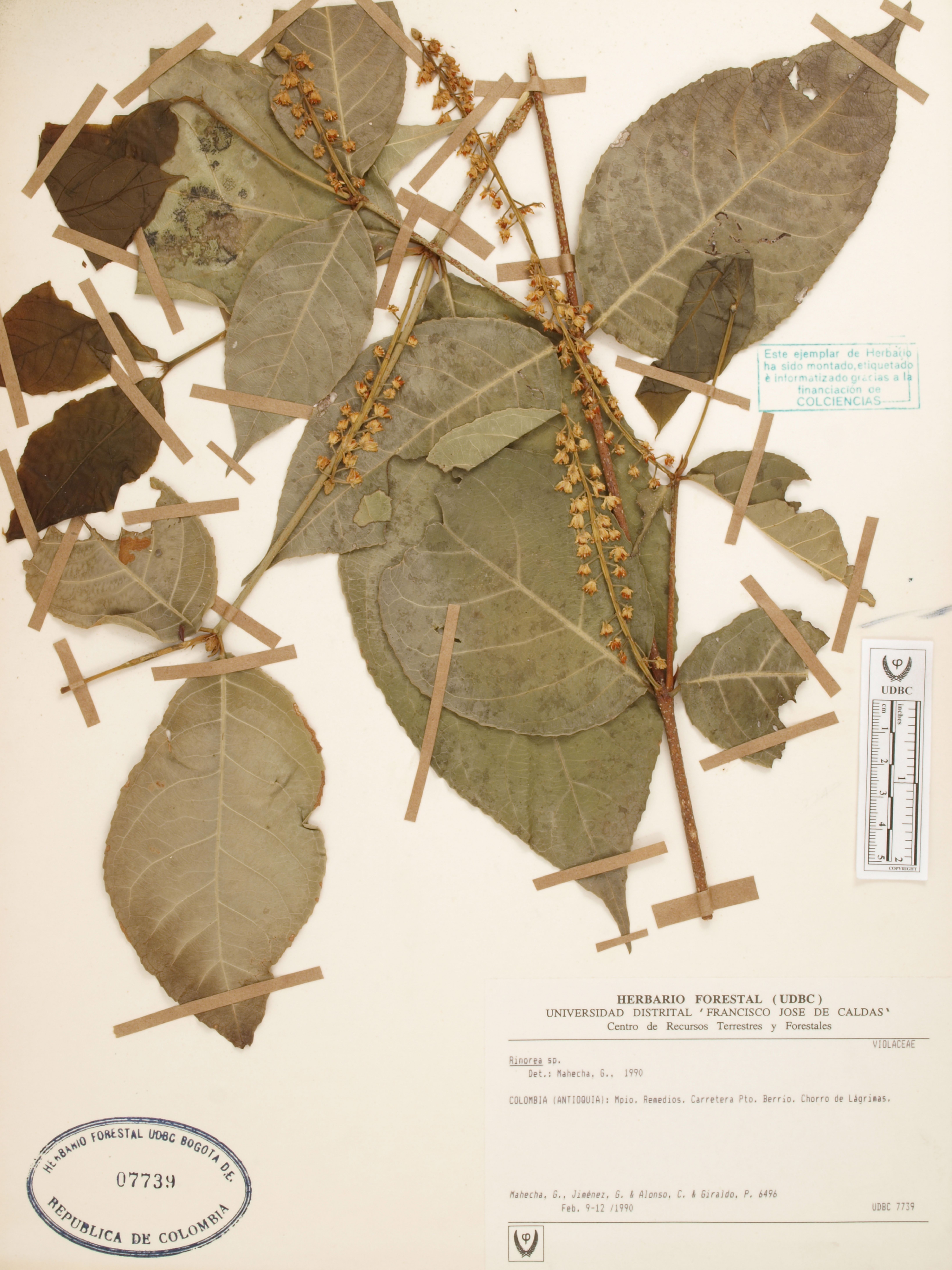 Fotografía del ejemplar Mahecha, G. 6496, determinado como Rinorea sp. en el año 2019
