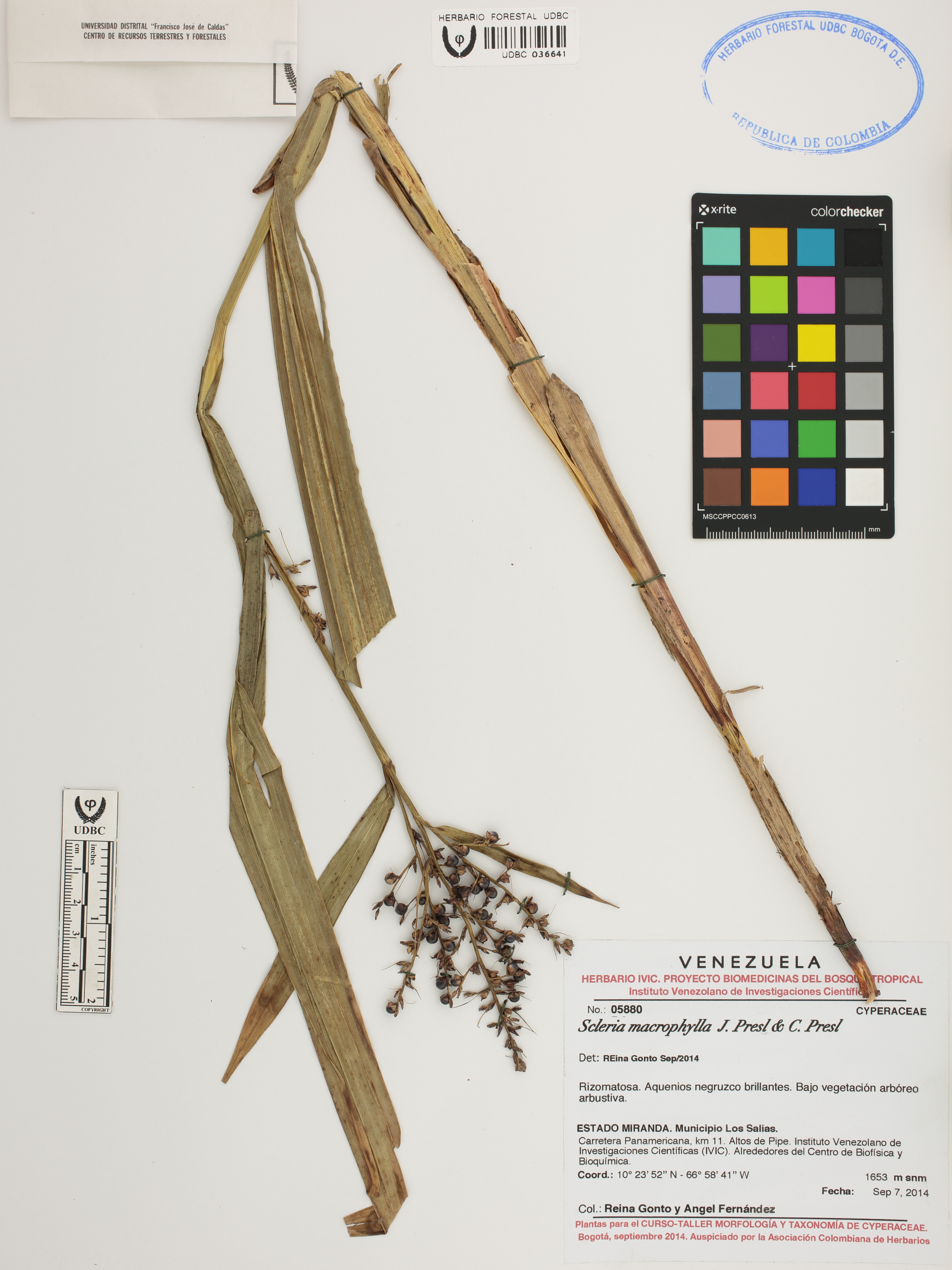 Fotografía del ejemplar Gonto, R. 5880, determinado como Scleria macrophylla en el año 2014