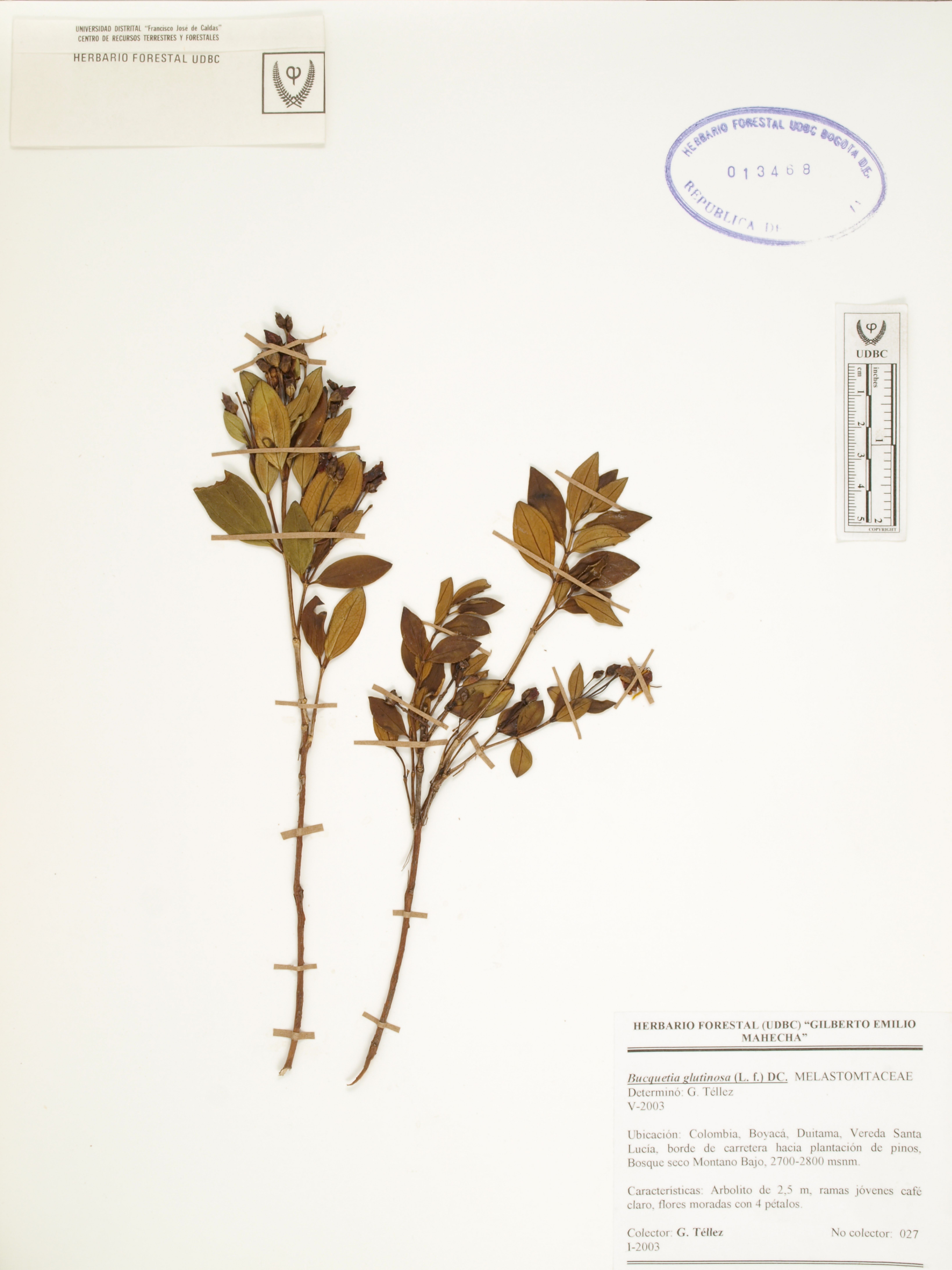 | dc.description | Fotografía del ejemplar Téllez, G. 27, determinado como Bucquetia glutinosa en el año 2003 | |