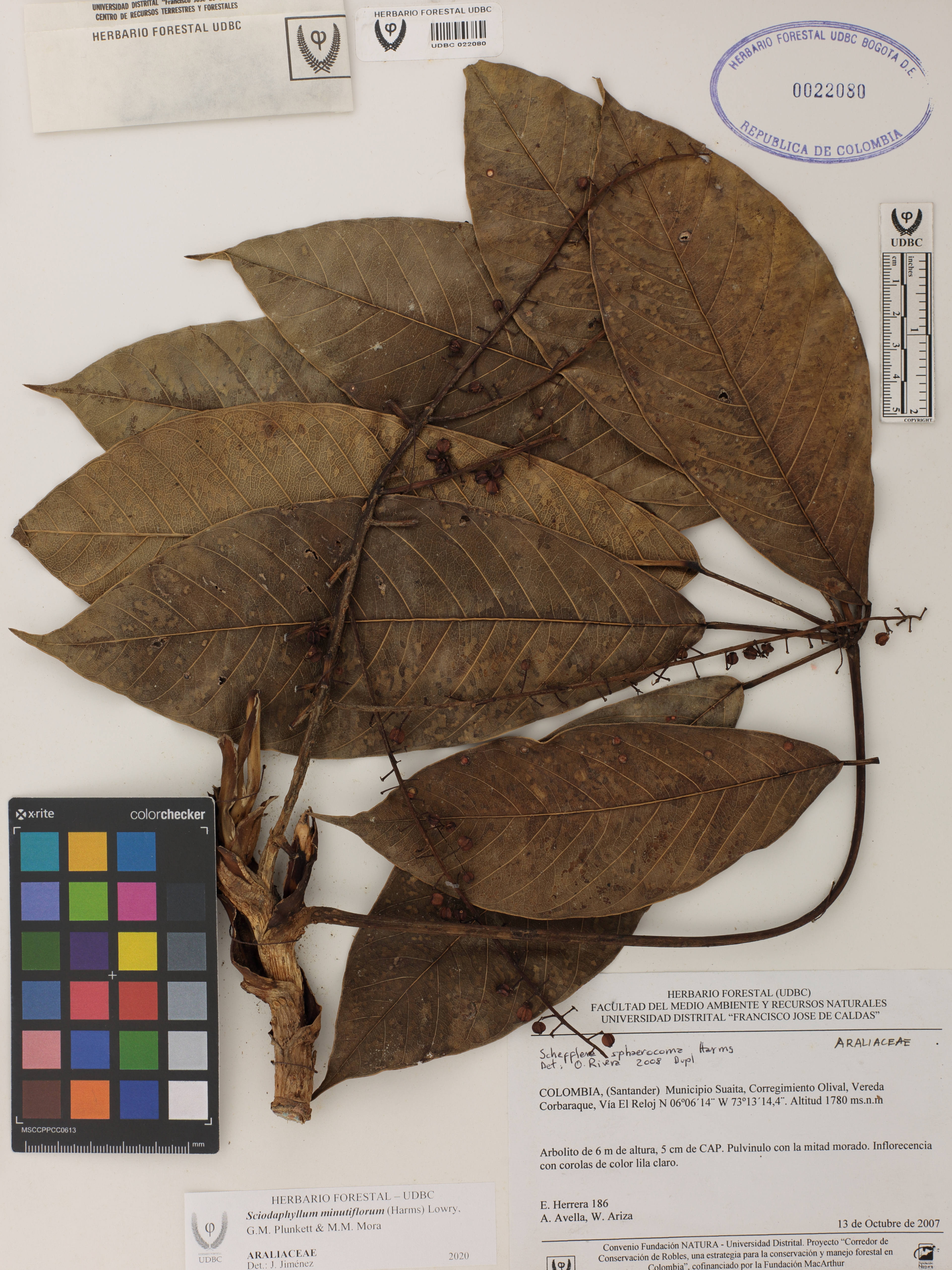 | dc.description | Fotografía del ejemplar Herrera, E. 186, determinado como Sciodaphyllum minutiflorum en el año 2020 | |