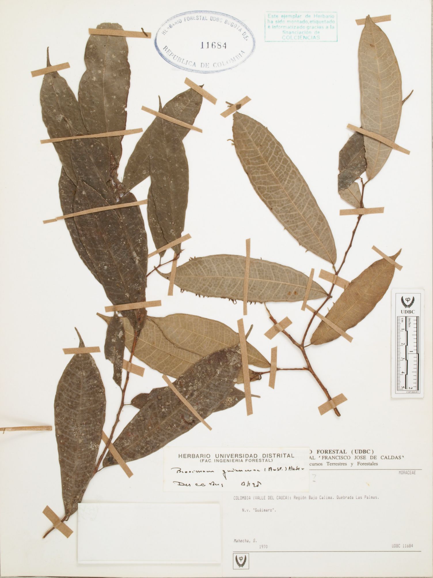 Fotografía del ejemplar Mahecha, G., determinado como Brosimum guianense en el año 1998