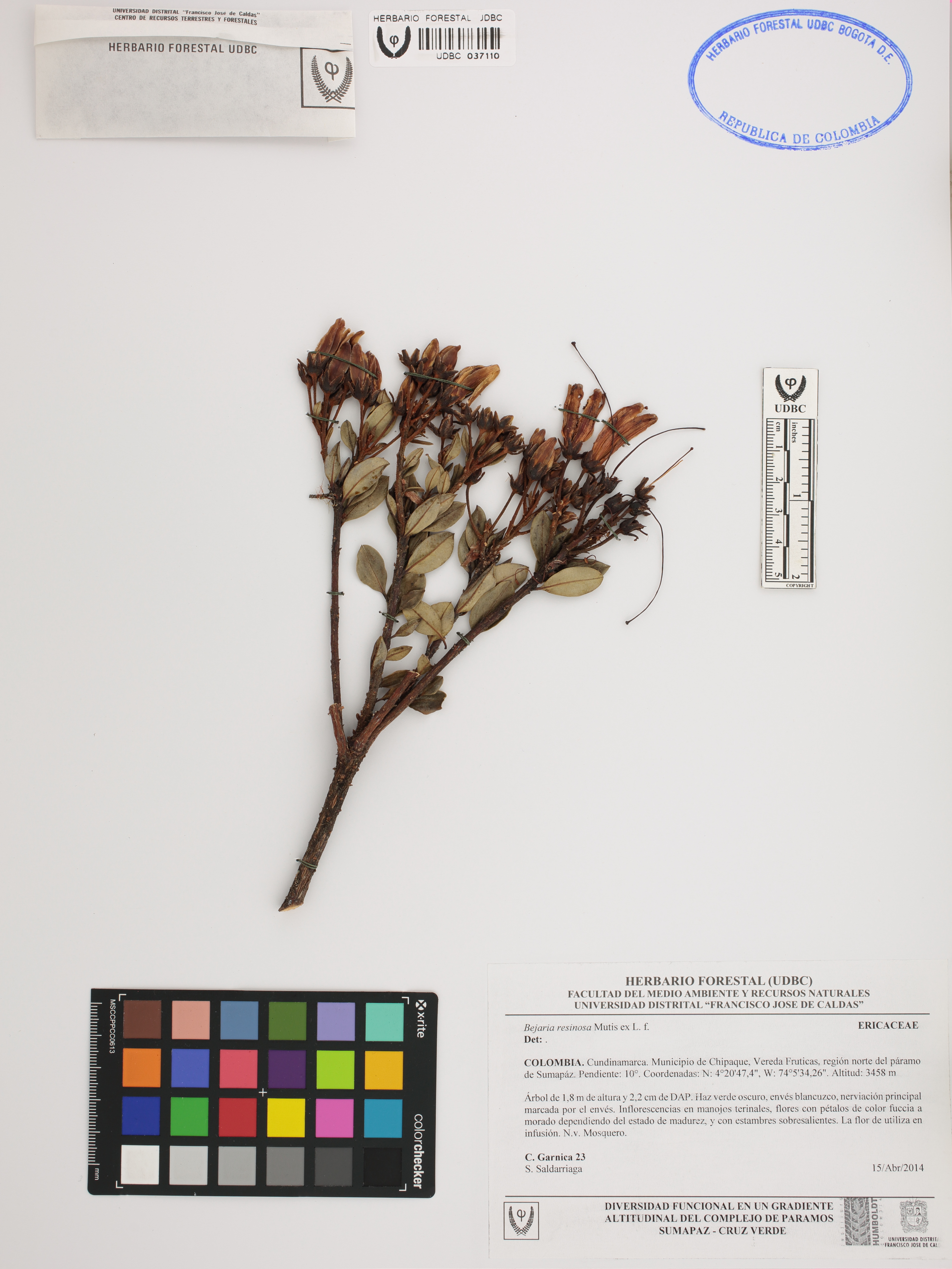 Fotografía del ejemplar Garnica, C. 23, determinado como Bejaria resinosa