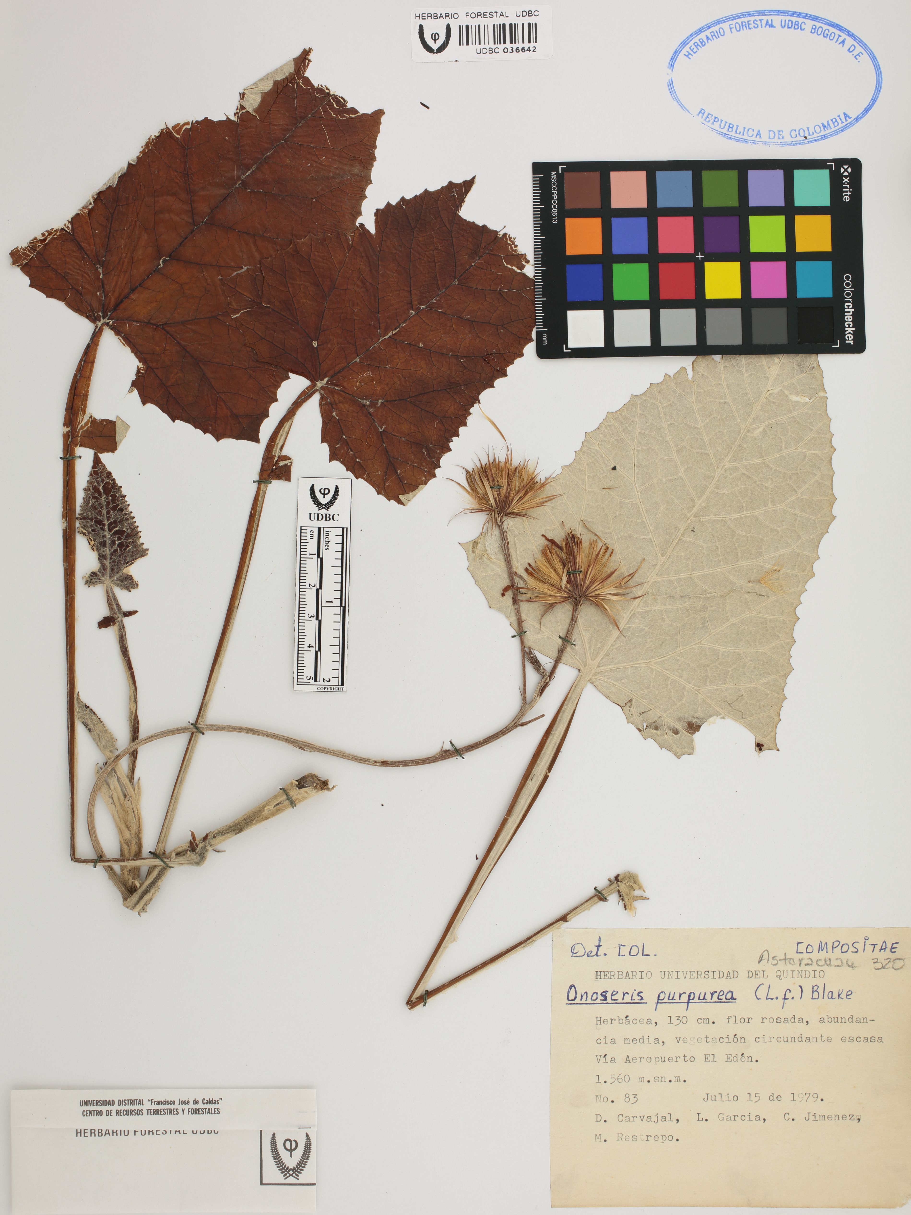 Fotografía del ejemplar Carvajal, D. 83, determinado como Onoseris purpurea