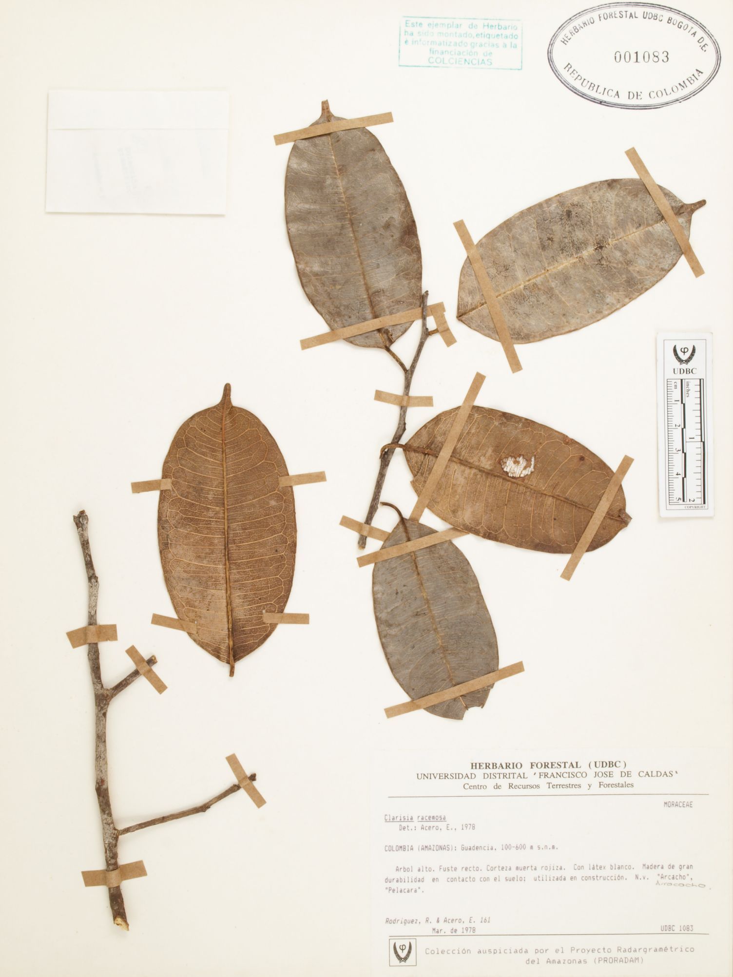 Fotografía del ejemplar Rodríguez, R. 161, determinado como Clarisia racemosa en el año 1978
