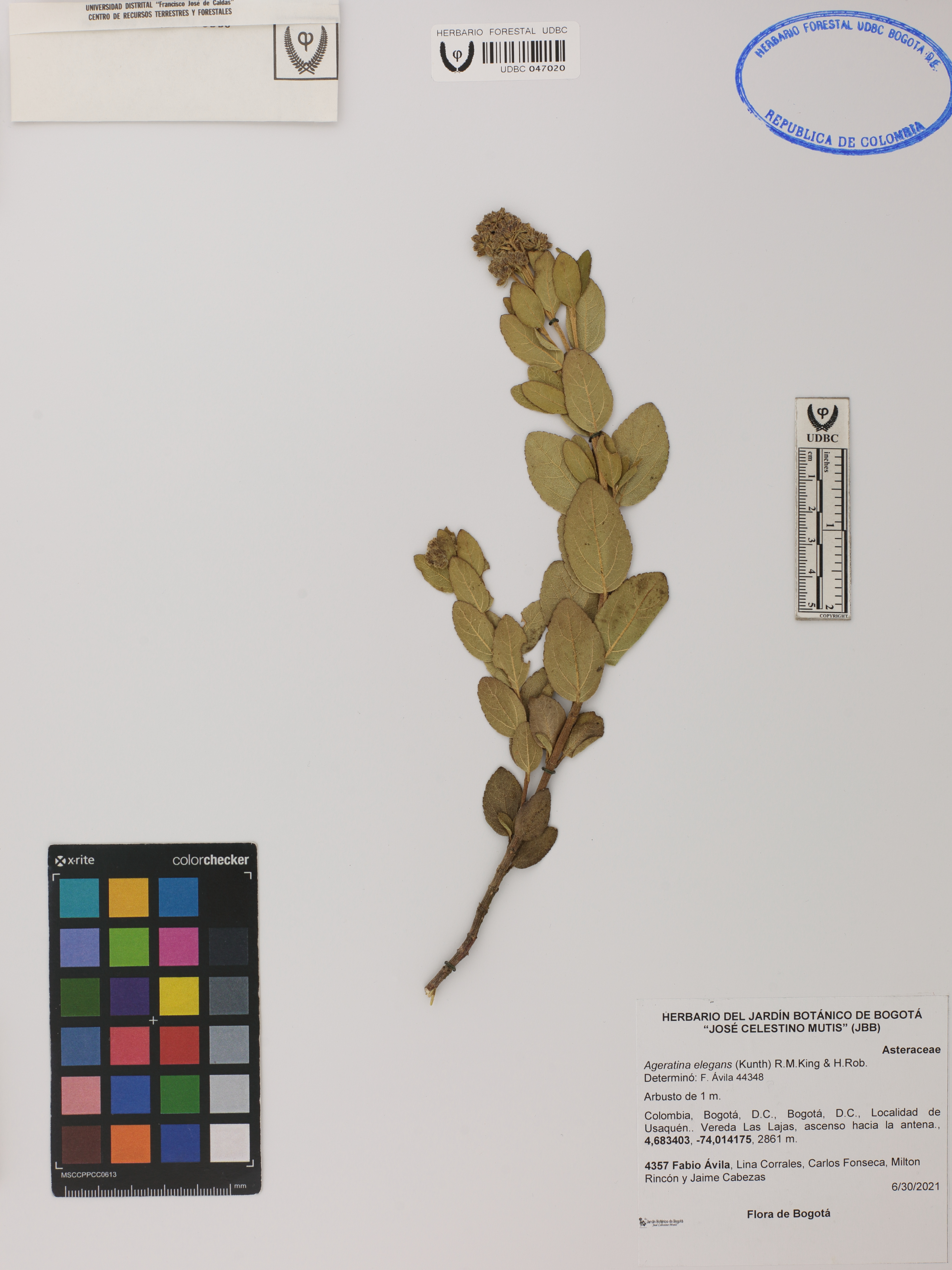 Fotografía del ejemplar Ávila, F. 4357, determinado como Ageratina elegans en el año 2021