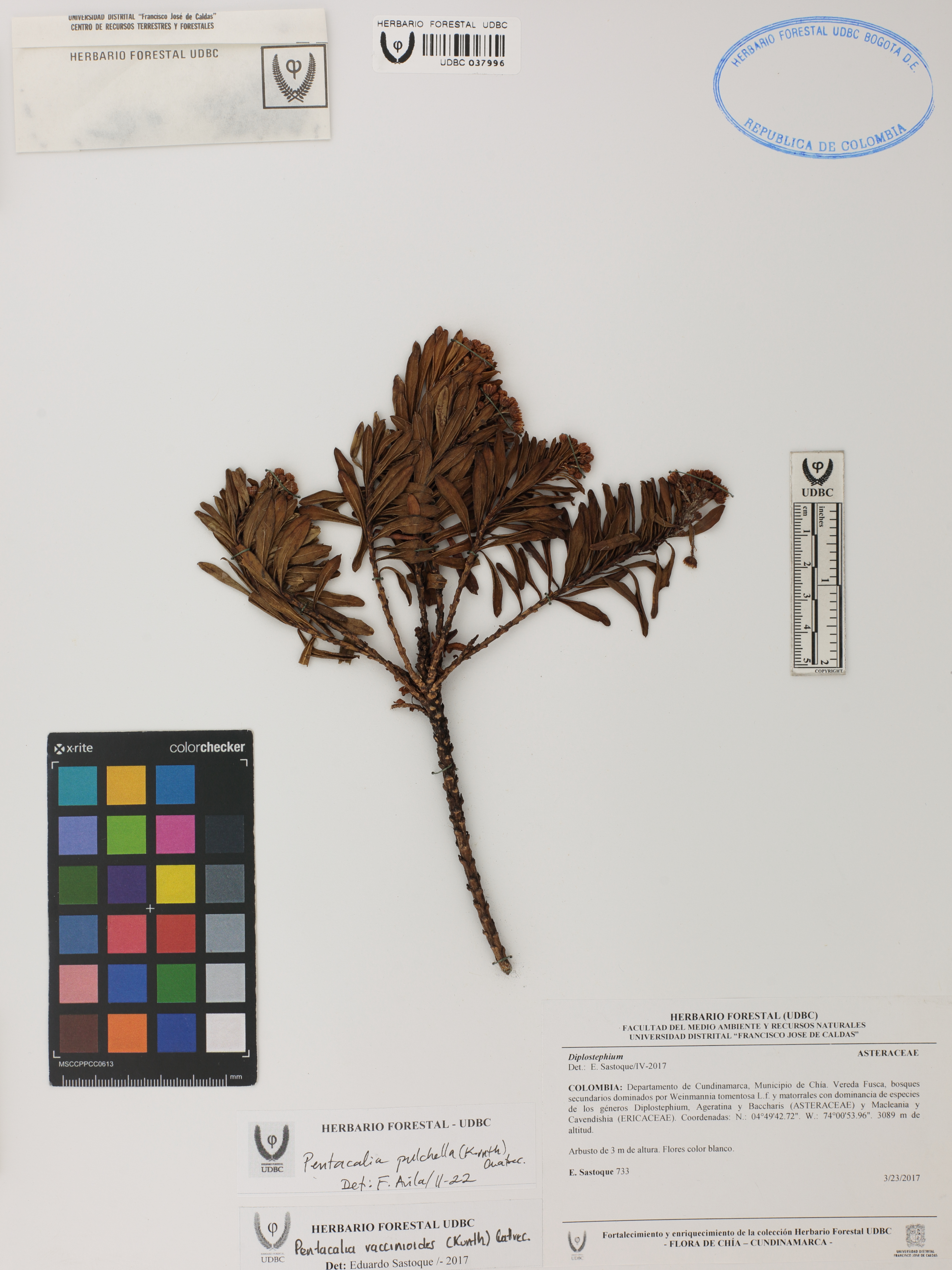 Fotografía del ejemplar Sastoque, E. 733, determinado como Pentacalia pulchella en el año 2022