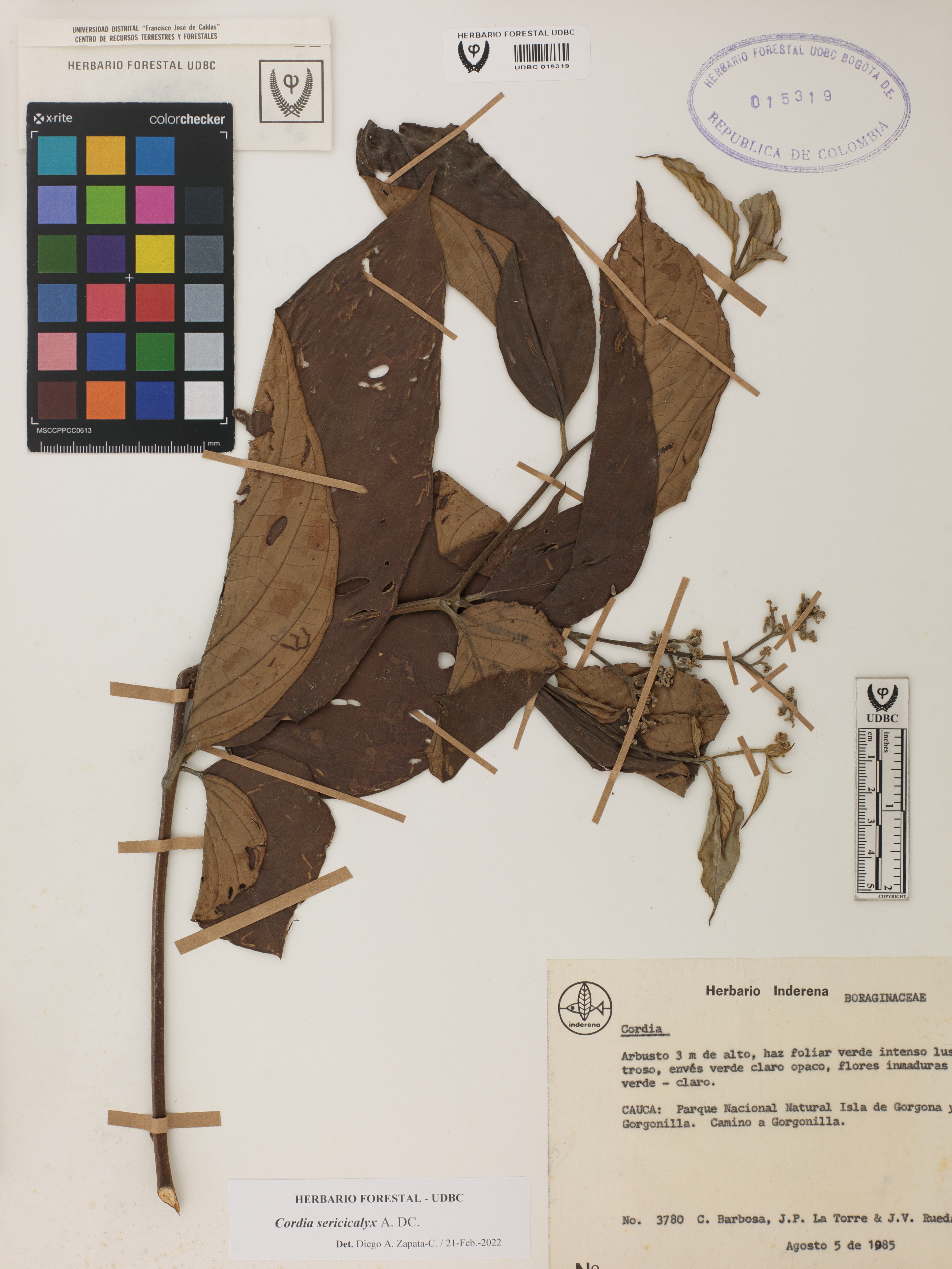 Fotografía del ejemplar Barbosa, C. 3780, determinado como Cordia sericicalyx en el año 2022