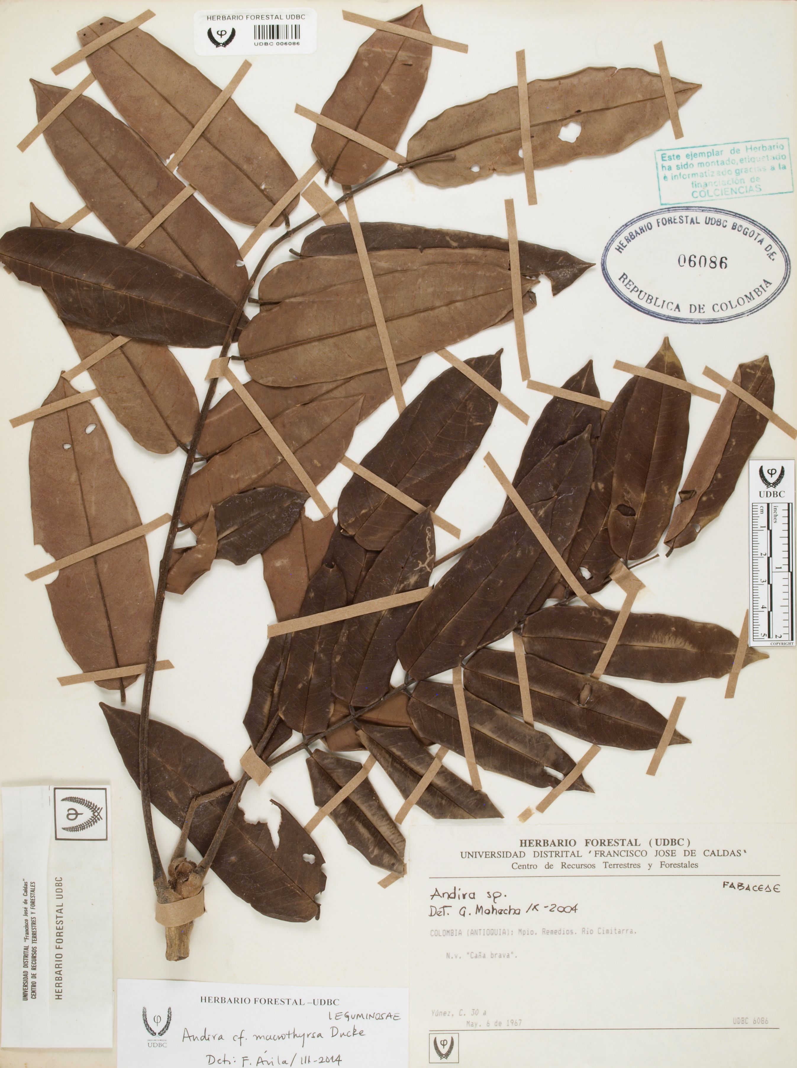 Fotografía del ejemplar Yúñez, C. 30, determinado como Andira macrothyrsa en el año 2014