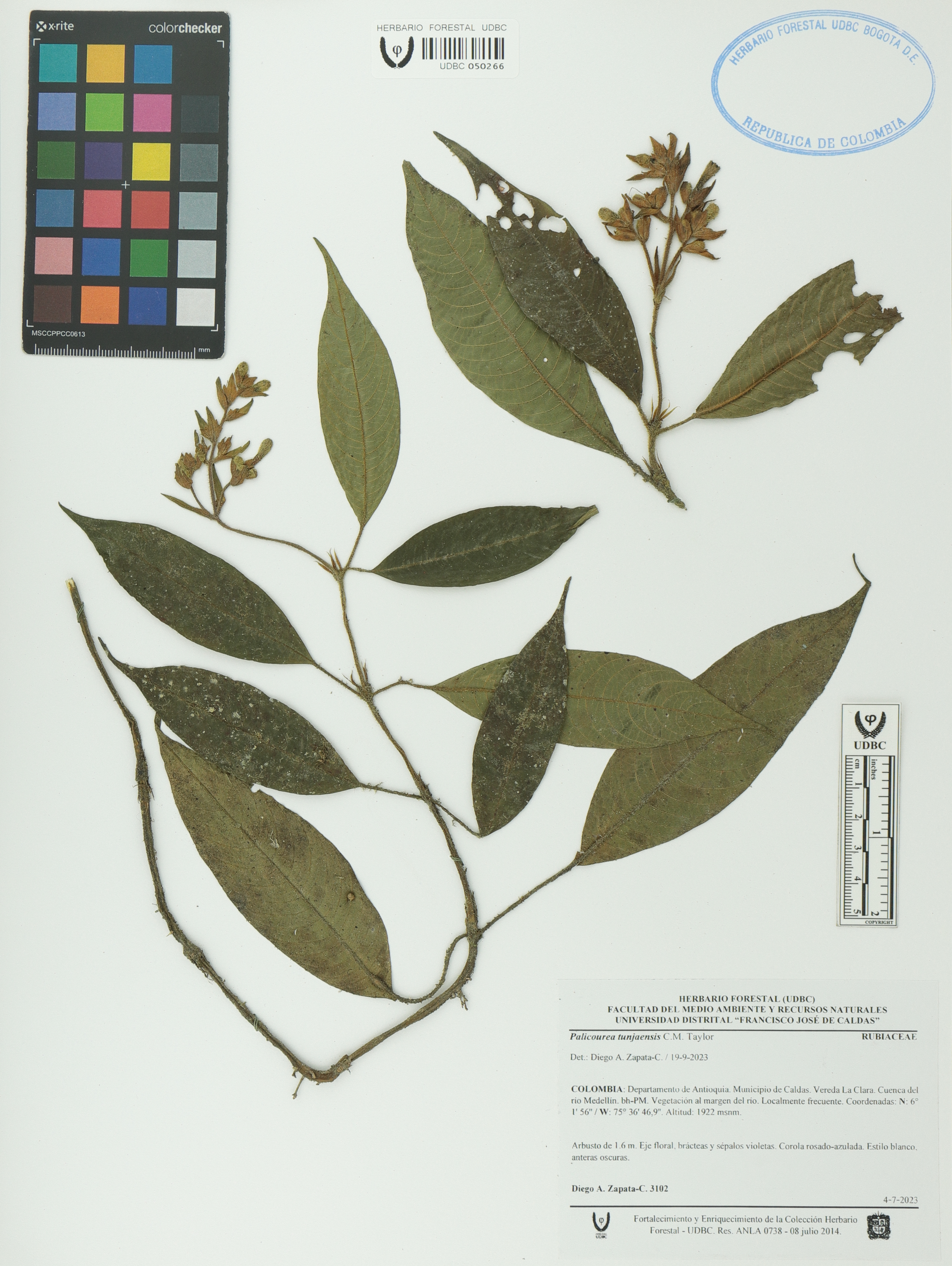 | dc.description | Fotografía del ejemplar Zapata-C., D. 3102, determinado como Palicourea tunjaensis en el año 2023 | |