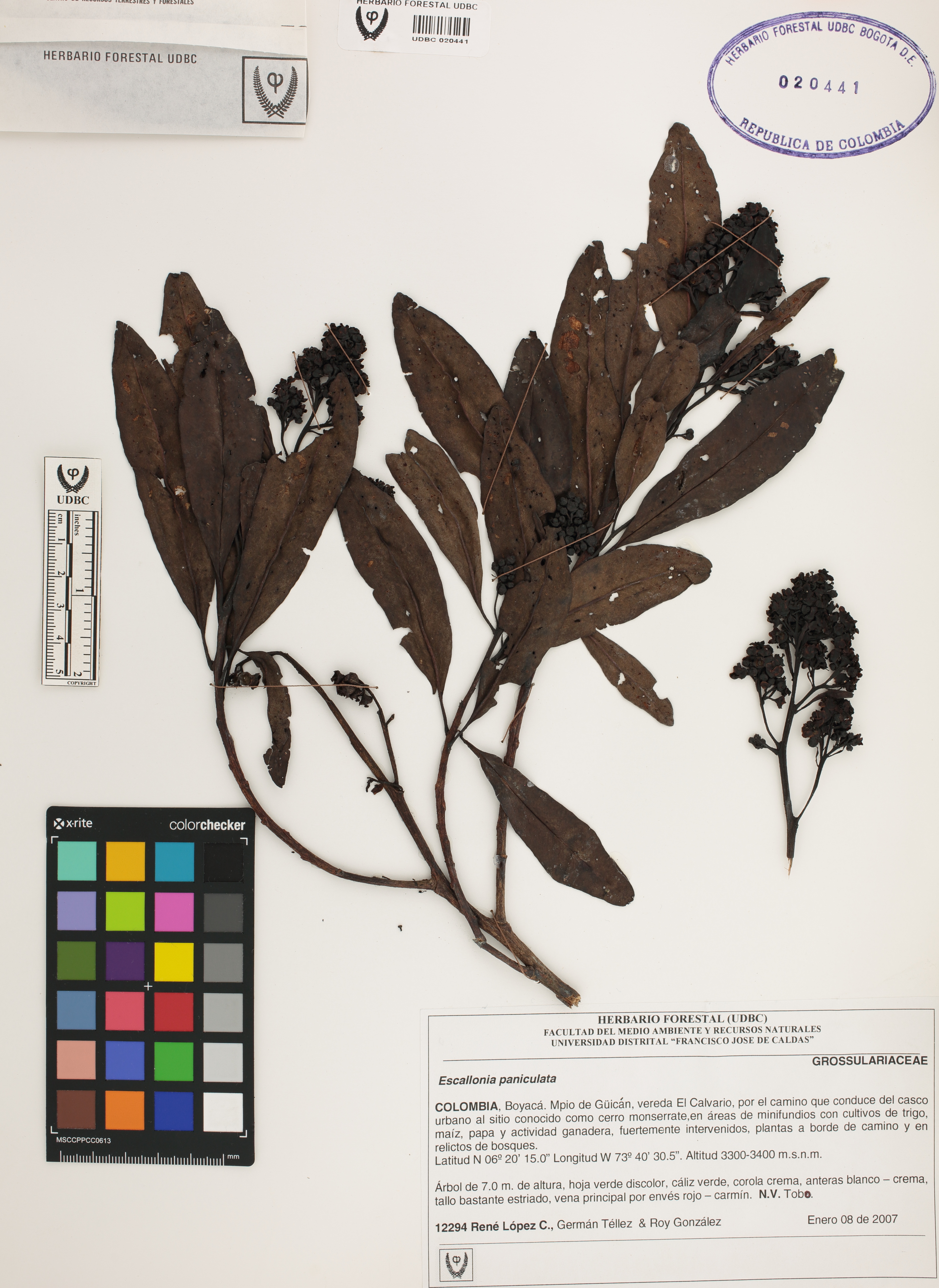 Fotografía del ejemplar López, R. 12294, determinado como Escallonia paniculata