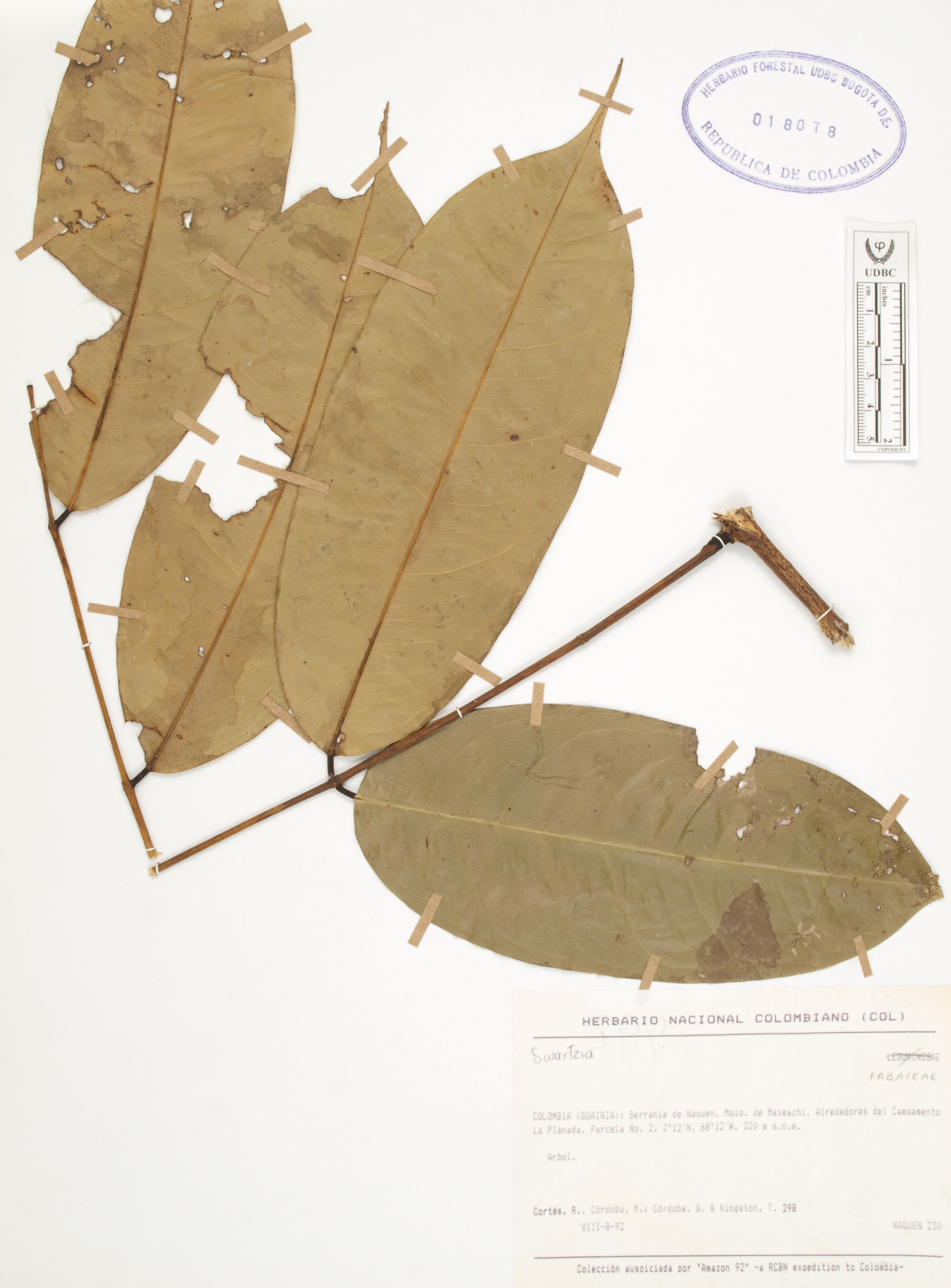 | dc.description | Fotografía del ejemplar Cortés-B., R. 298, determinado como Swartzia caudata en el año 2010 | |