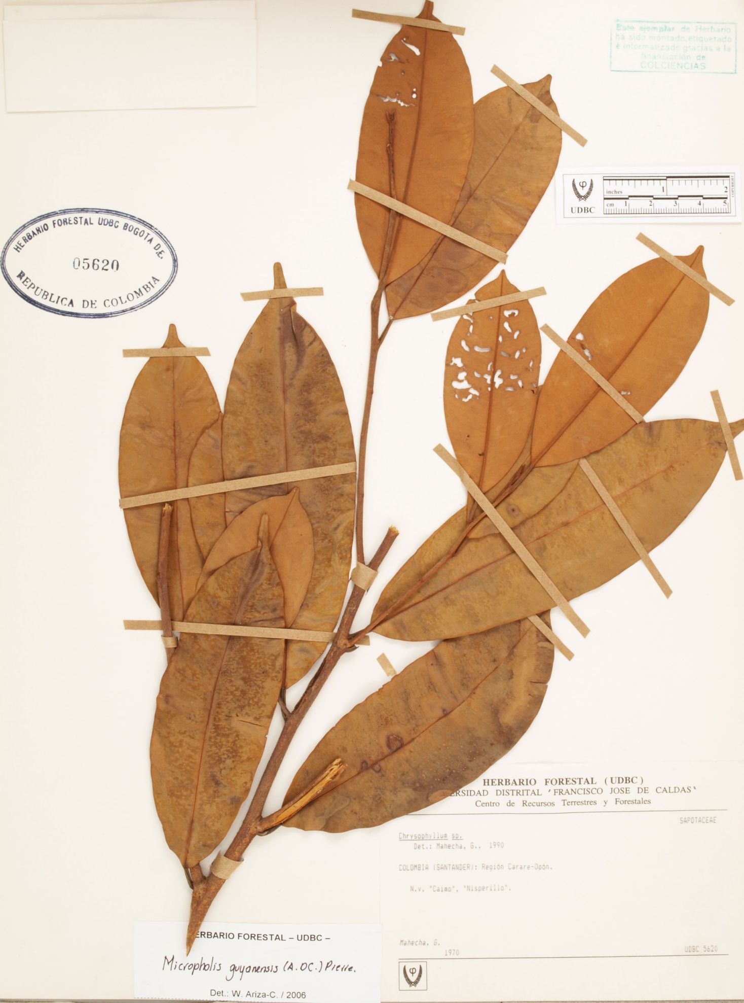 Fotografía del ejemplar Mahecha, G., determinado como Micropholis guyanensis en el año 2006