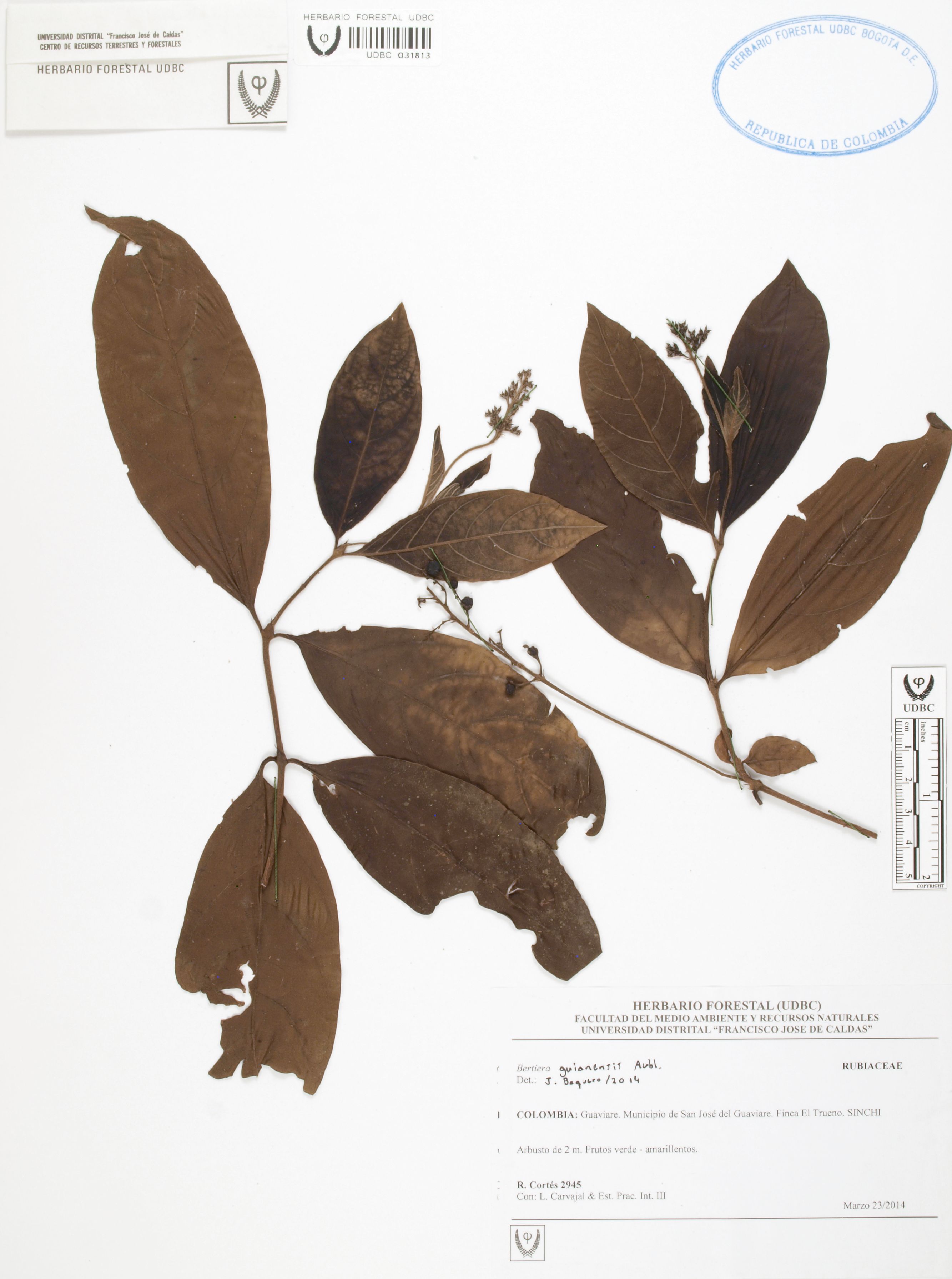 Fotografía del ejemplar Cortés, R. 2945, determinado como Bertiera guianensis en el año 2014