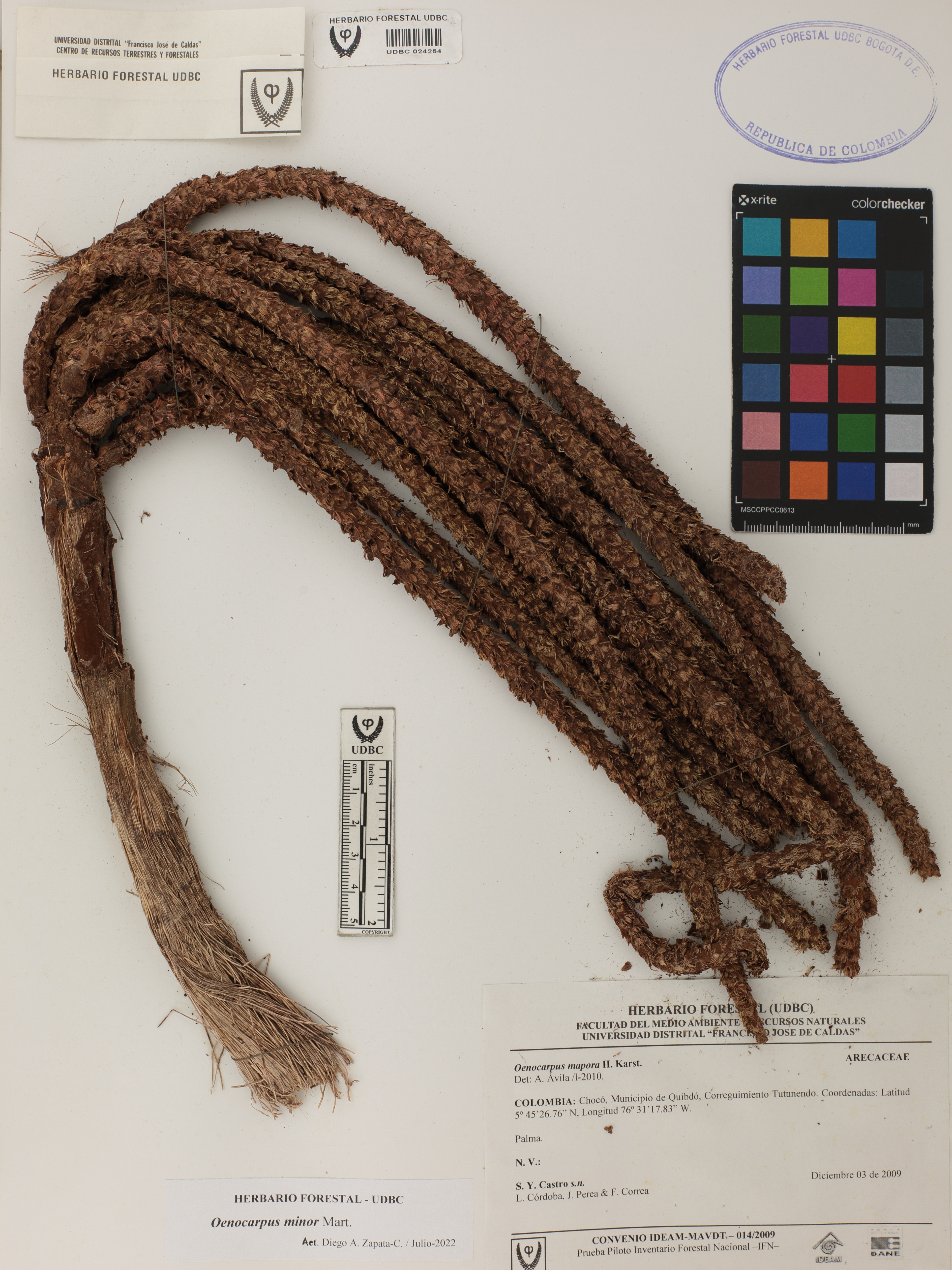 | dc.description | Fotografía del ejemplar Castro, S., determinado como Oenocarpus minor en el año 2010 | |