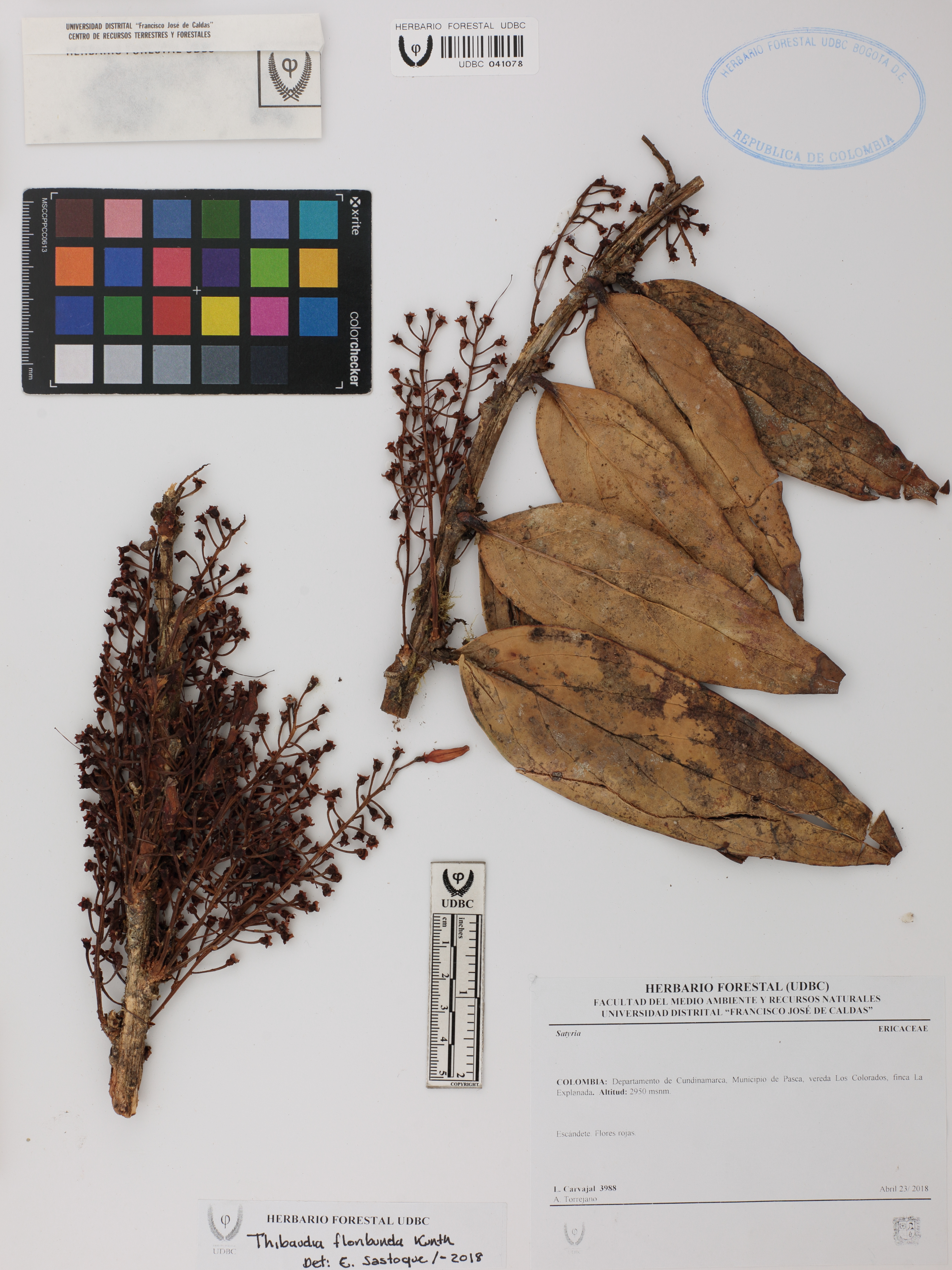 Fotografía del ejemplar Carvajal, L. 3988, determinado como Thibaudia floribunda en el año 2018