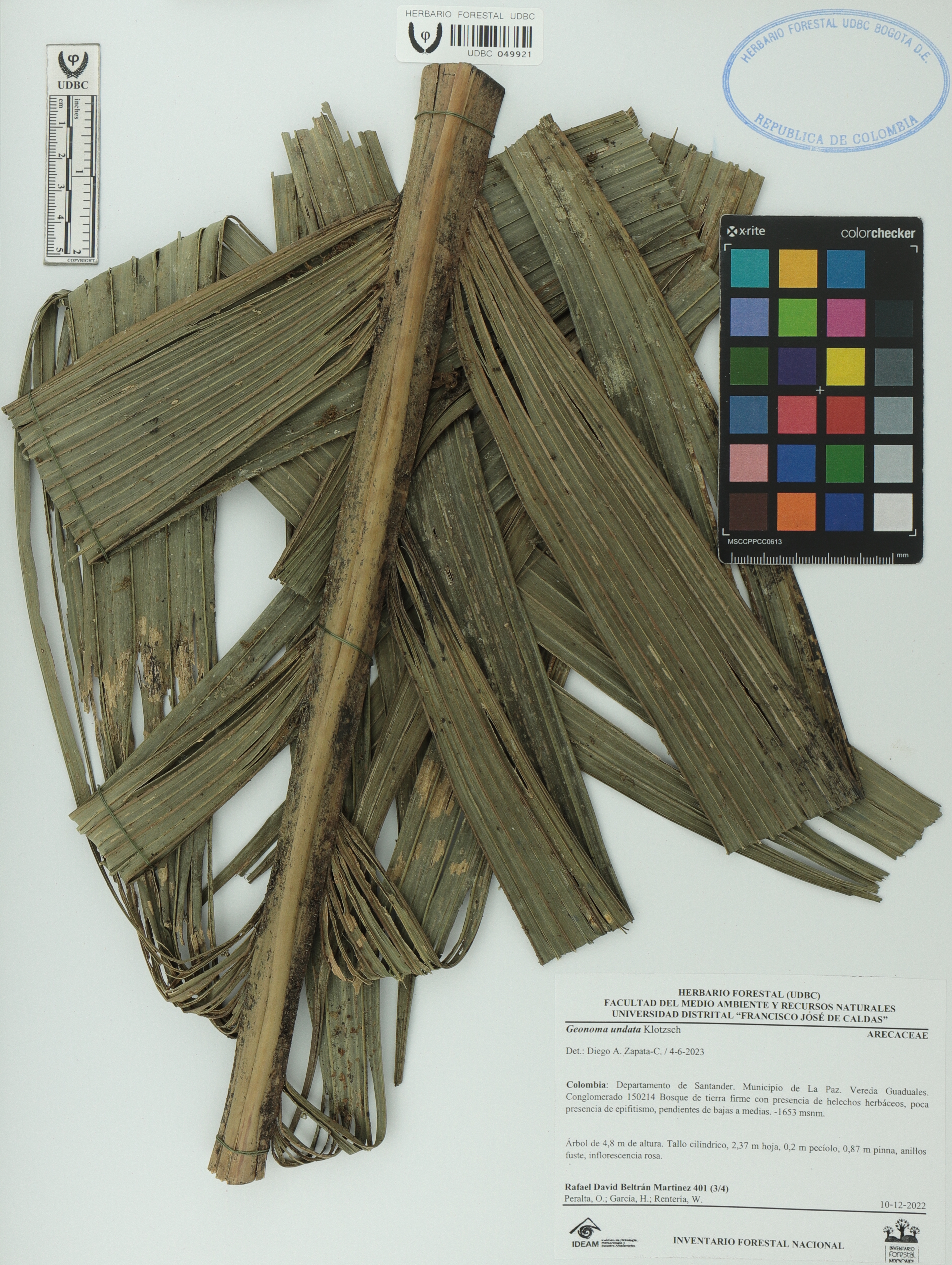 Fotografía del ejemplar Beltrán-M., R. 401, determinado como Geonoma undata en el año 2023