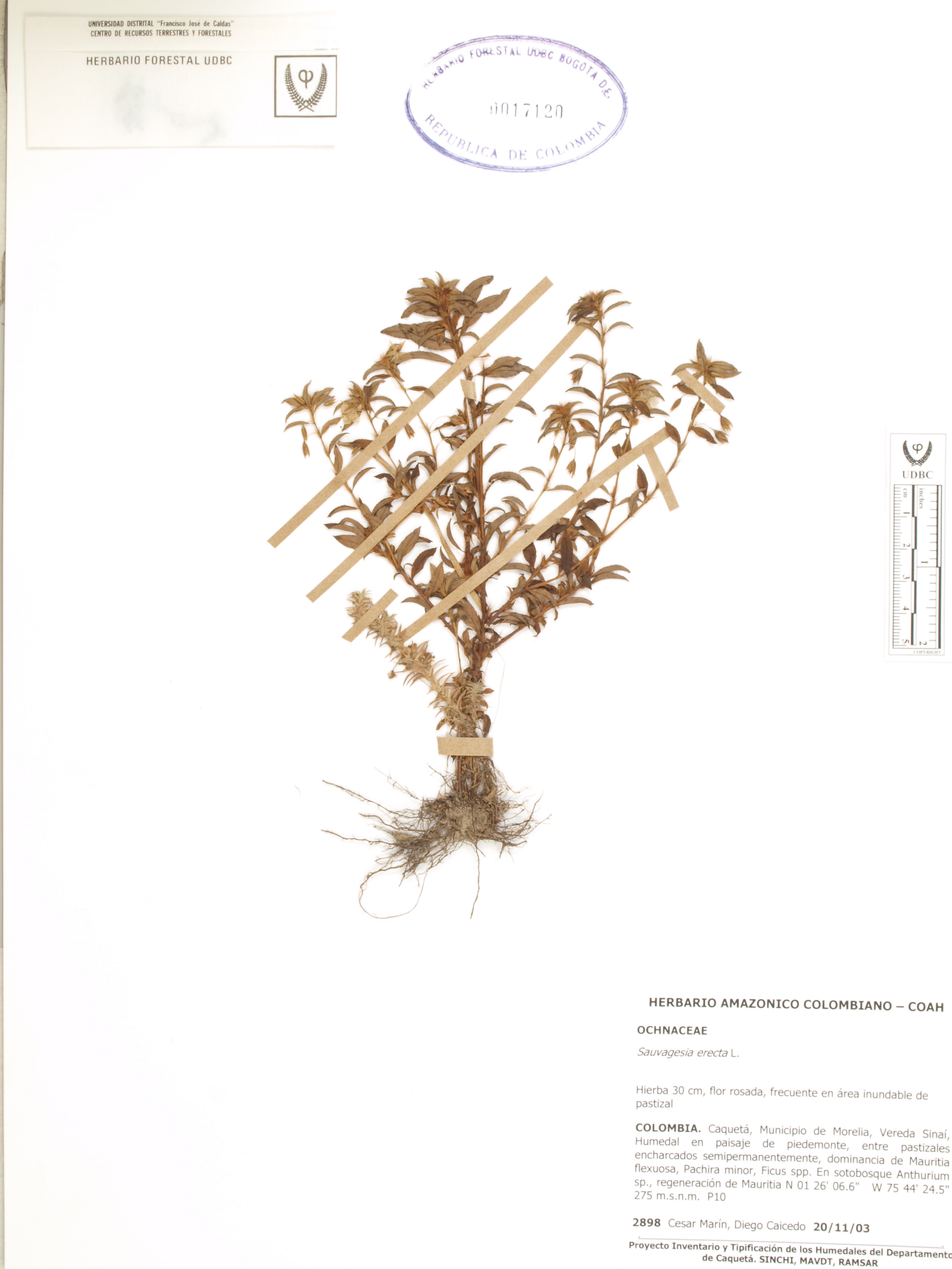 Fotografía del ejemplar Marín, C. 2898, determinado como Sauvagesia erecta
