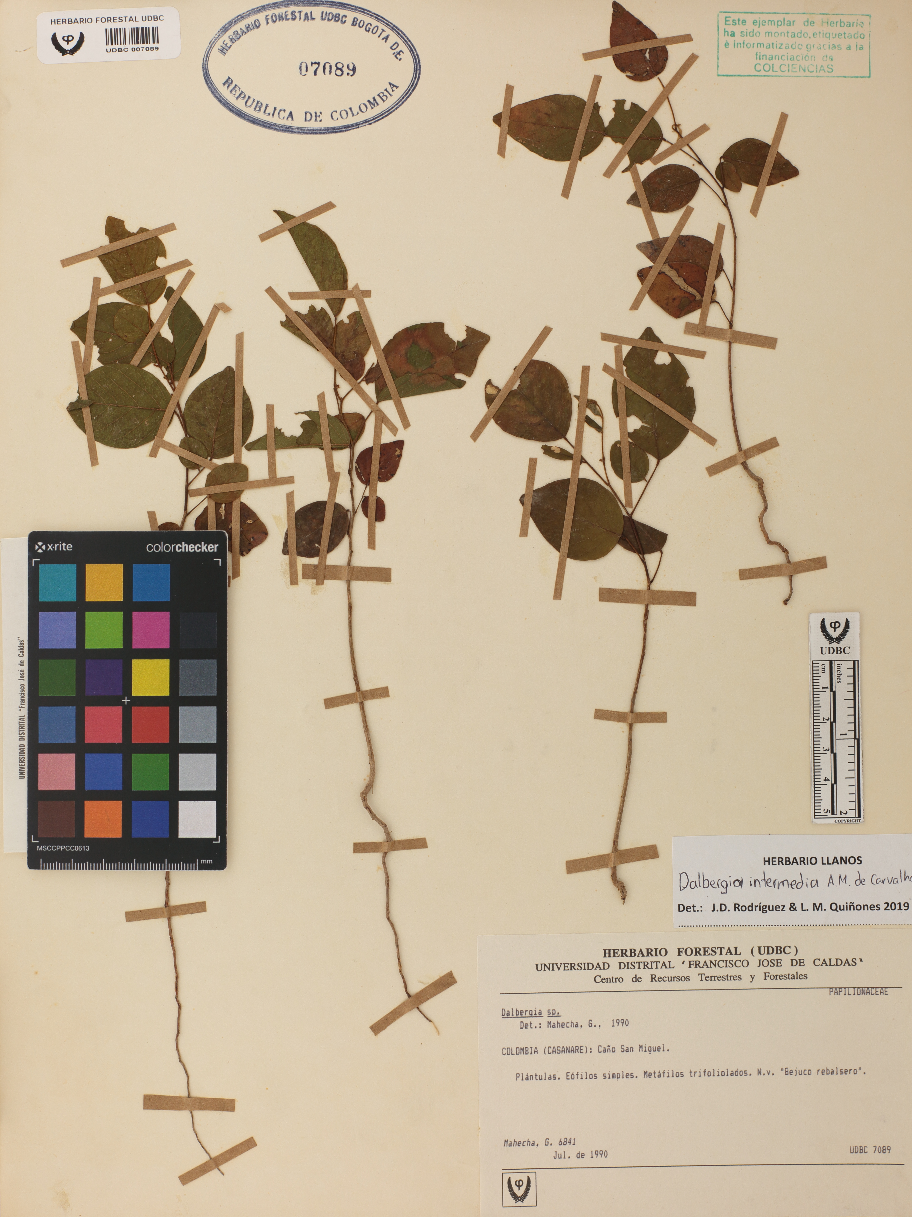 Fotografía del ejemplar Mahecha, G. 6841, determinado como Dalbergia intermedia en el año 2019