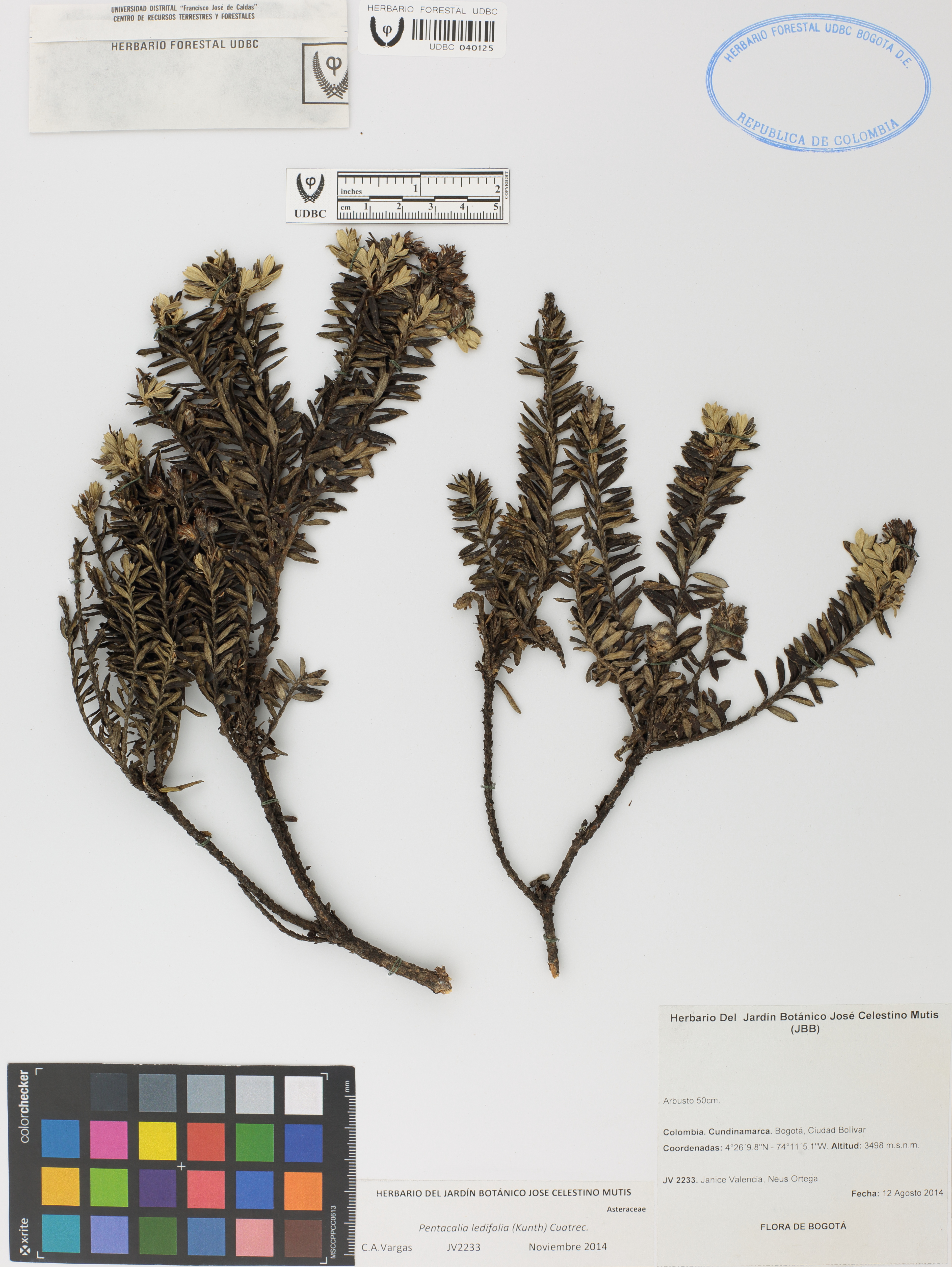 Fotografía del ejemplar Valencia, J. 2233, determinado como Pentacalia ledifolia en el año 2014