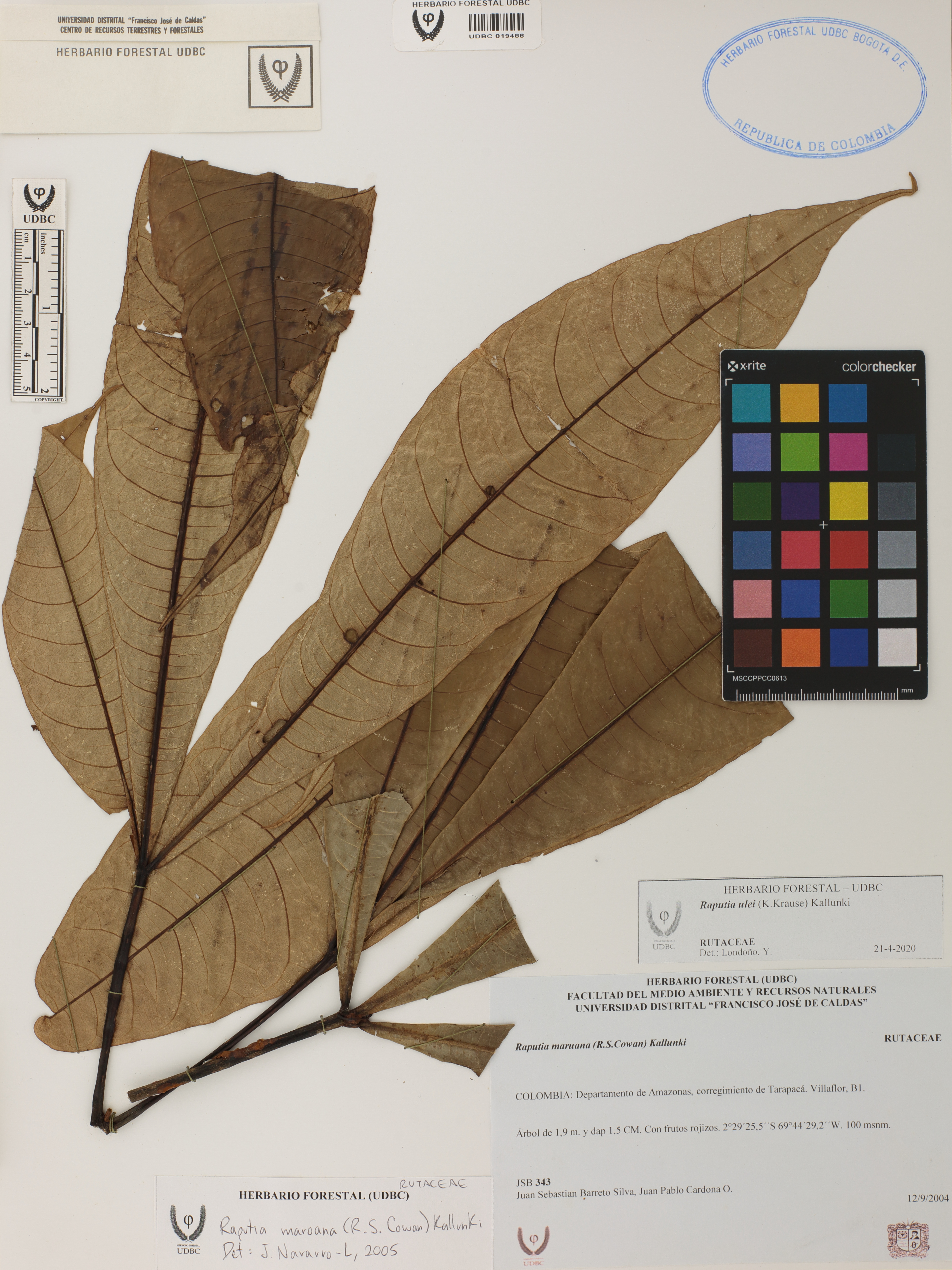 Fotografía del ejemplar Barreto, J. 343, determinado como Raputia ulei en el año 2020