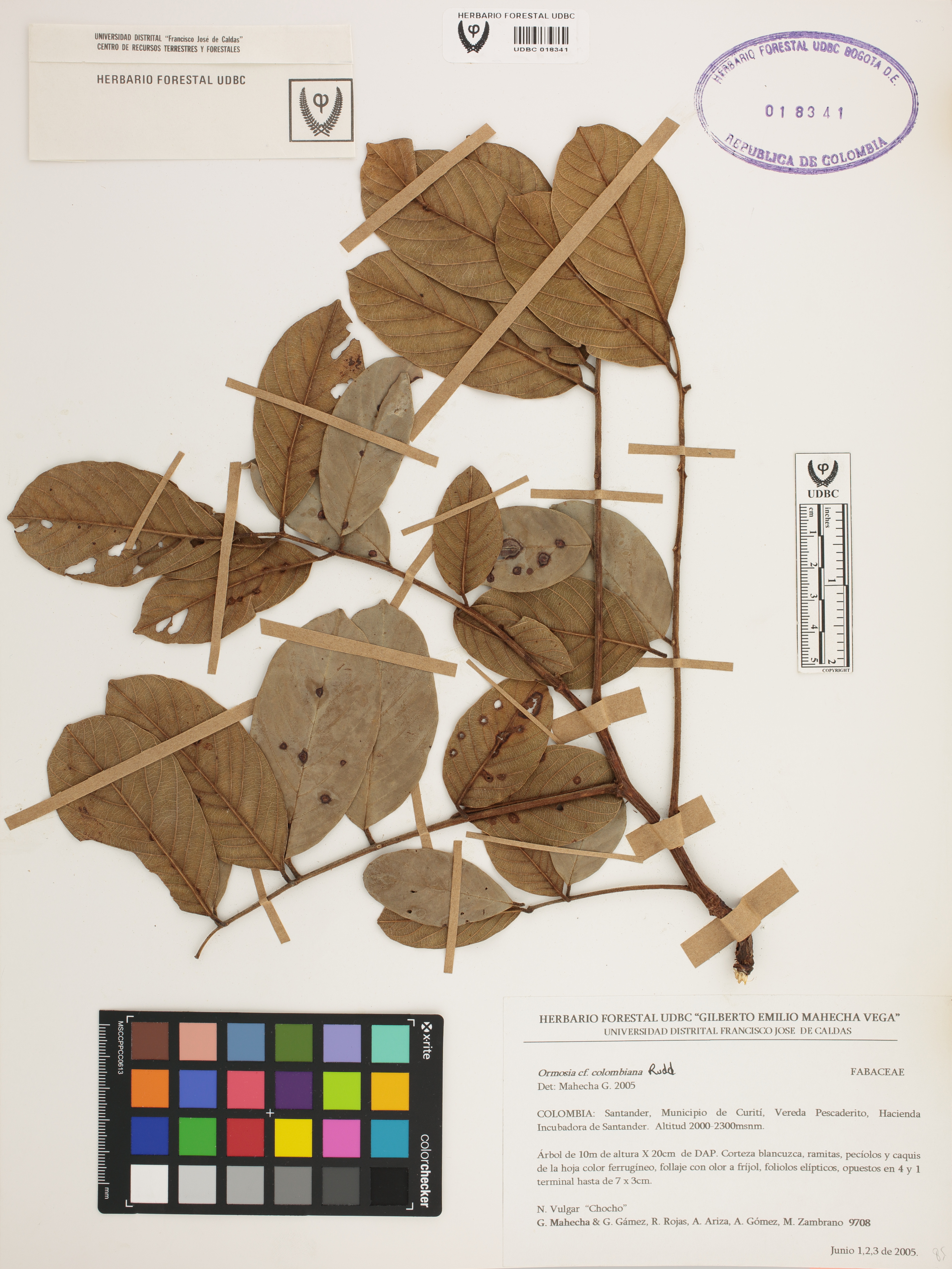 Fotografía del ejemplar Mahecha, G. 9708, determinado como Ormosia colombiana en el año 2005