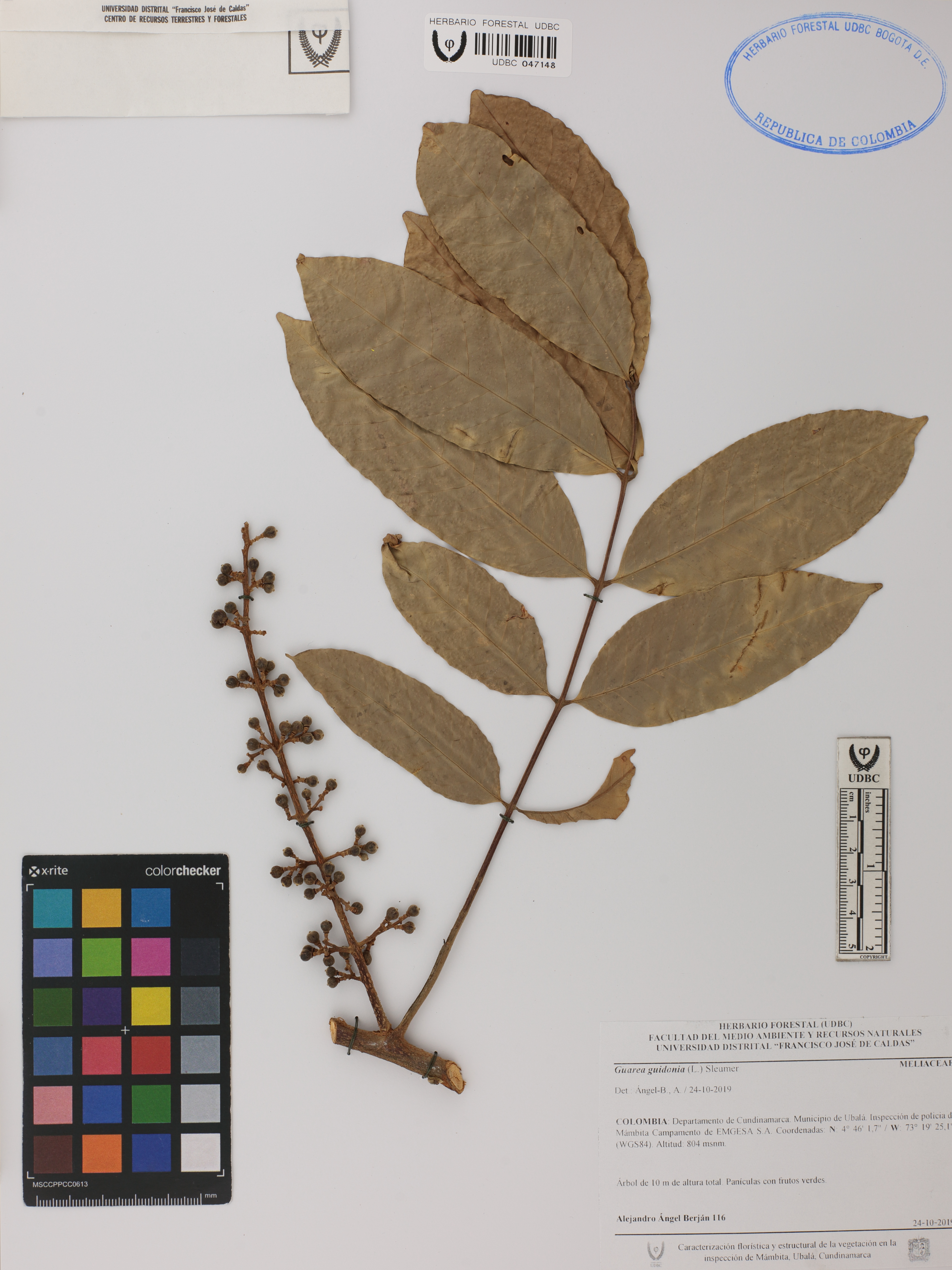 Fotografía del ejemplar Ángel-B., A. 116, determinado como Guarea guidonia en el año 2019
