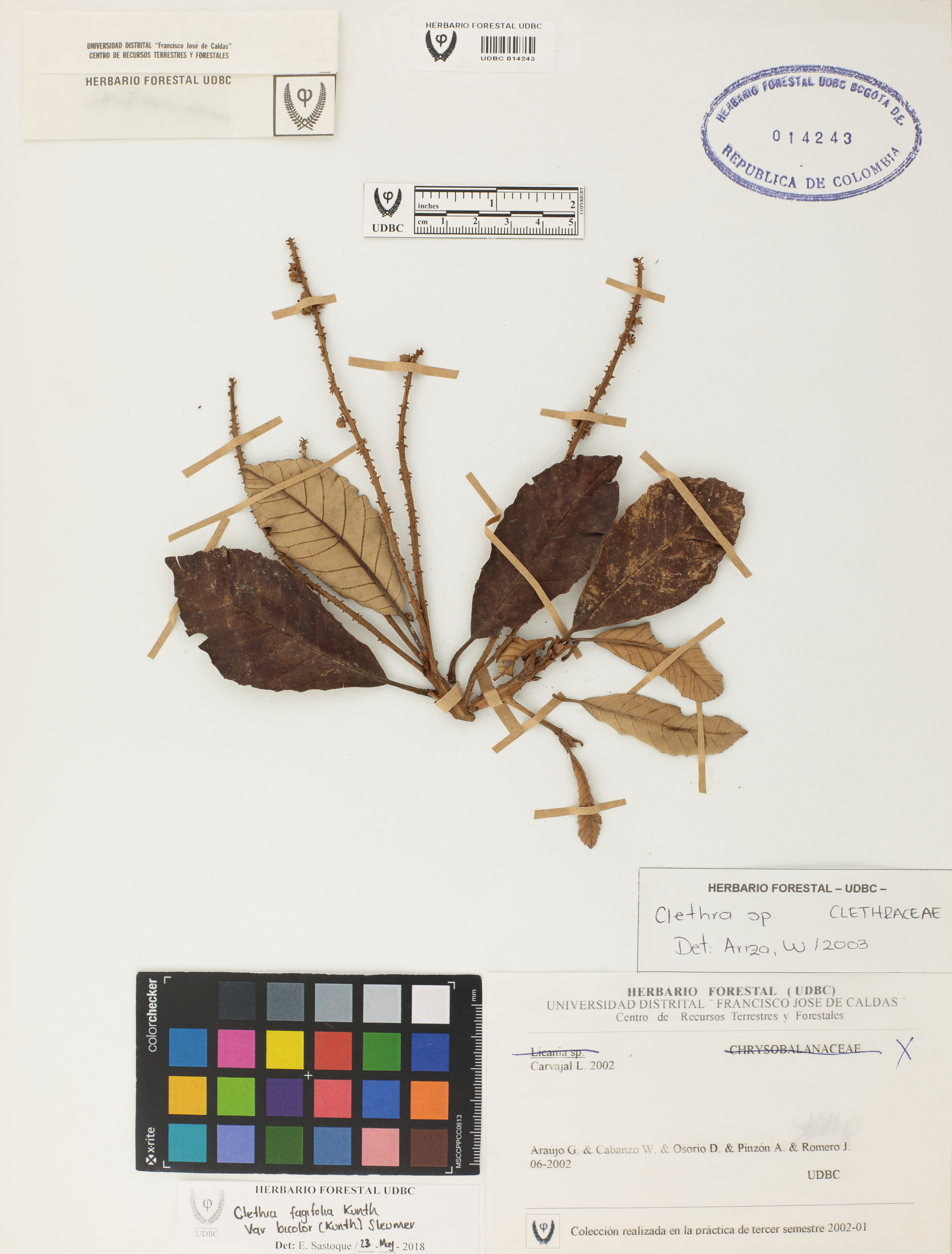 Fotografía del ejemplar Araújo, G., determinado como Clethra fagifolia var. bicolor en el año 2018