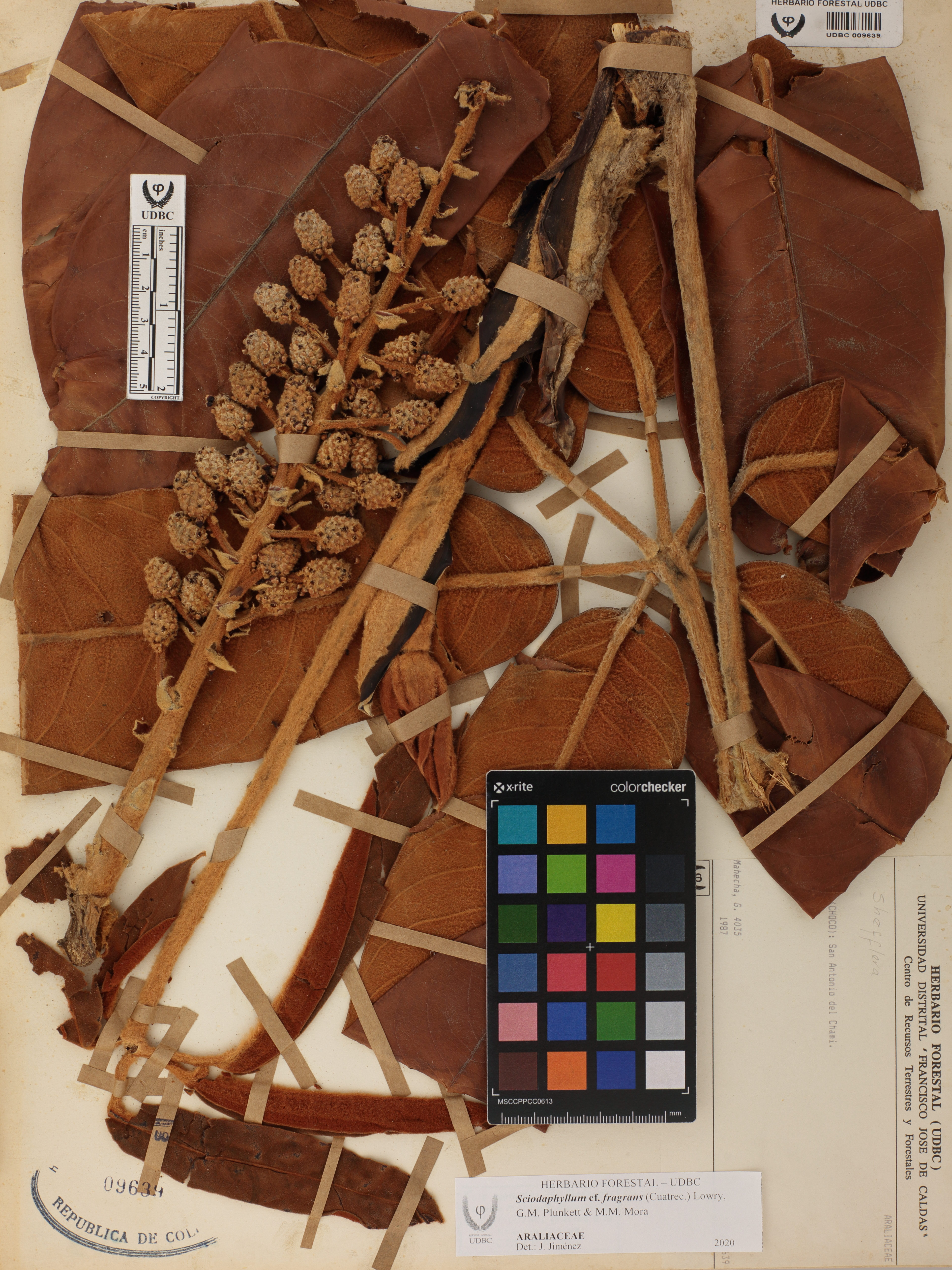 Fotografía del ejemplar Mahecha, G. 4035, determinado como Sciodaphyllum fragrans en el año 2020