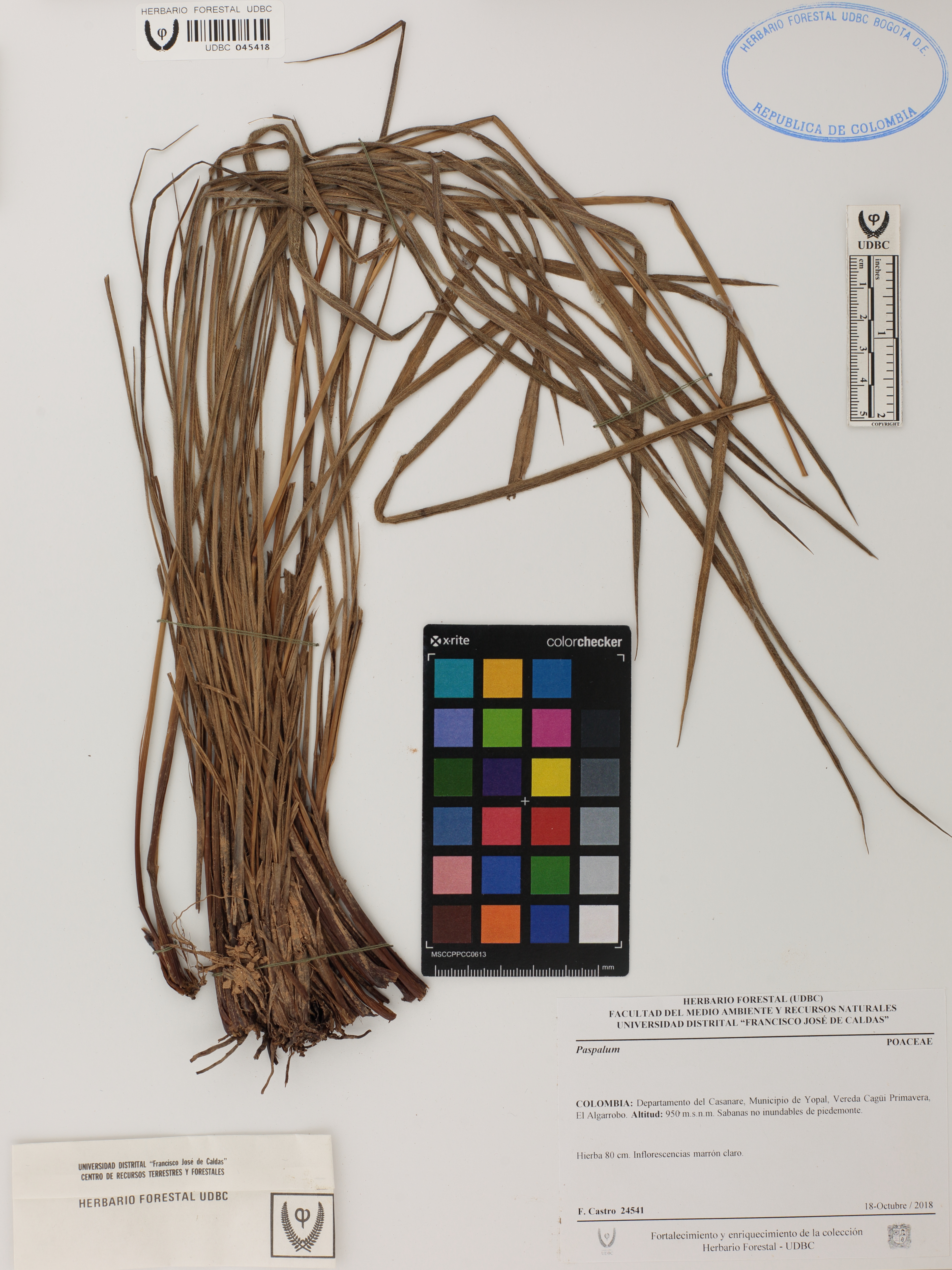 Fotografía del ejemplar Castro, F. 24541, determinado como Paspalum sp.