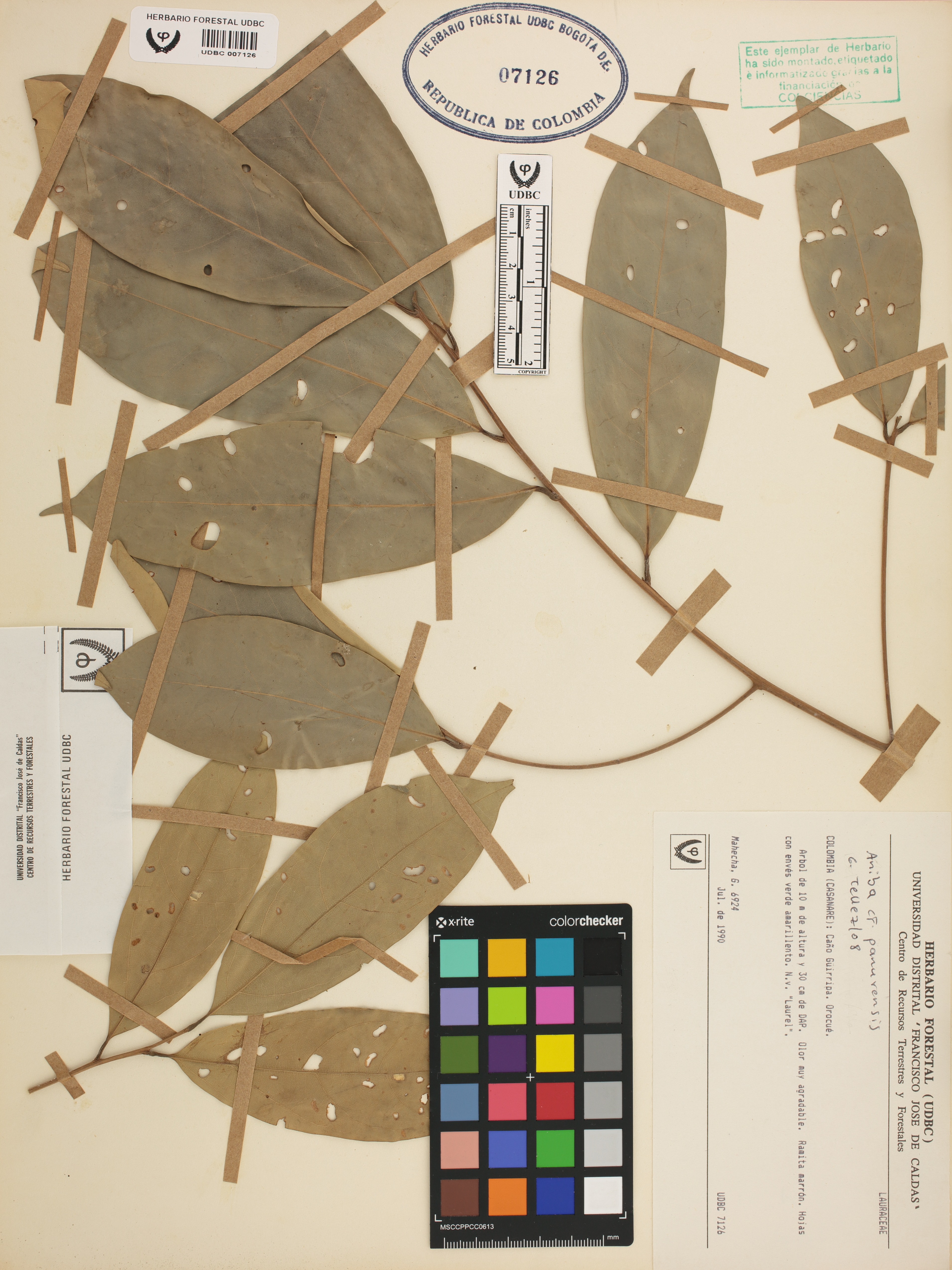 Fotografía del ejemplar Mahecha, G. 6924, determinado como Aniba panurensis en el año 2008