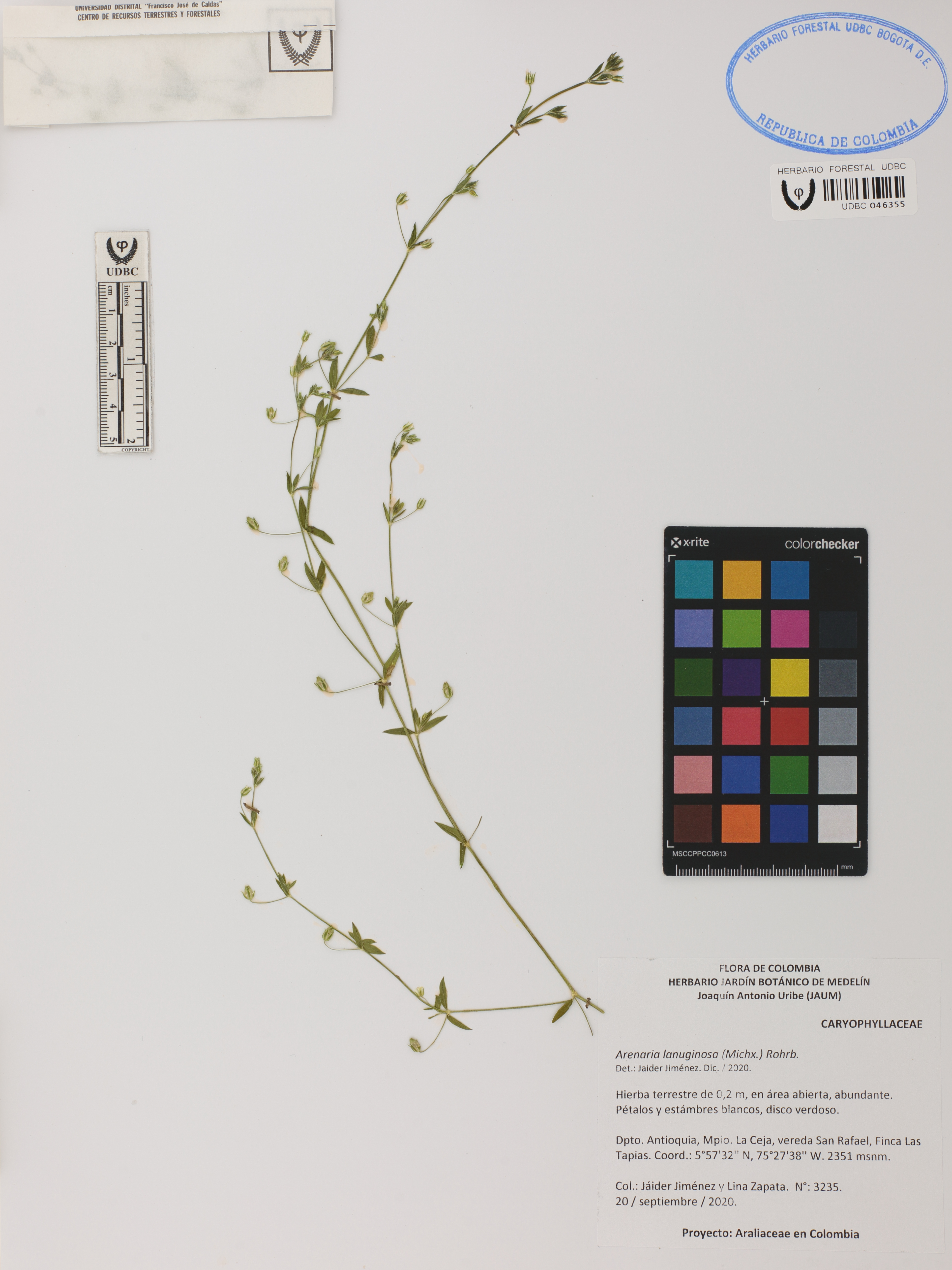 Fotografía del ejemplar Jiménez, J. 3235, determinado como Arenaria lanuginosa en el año 2020