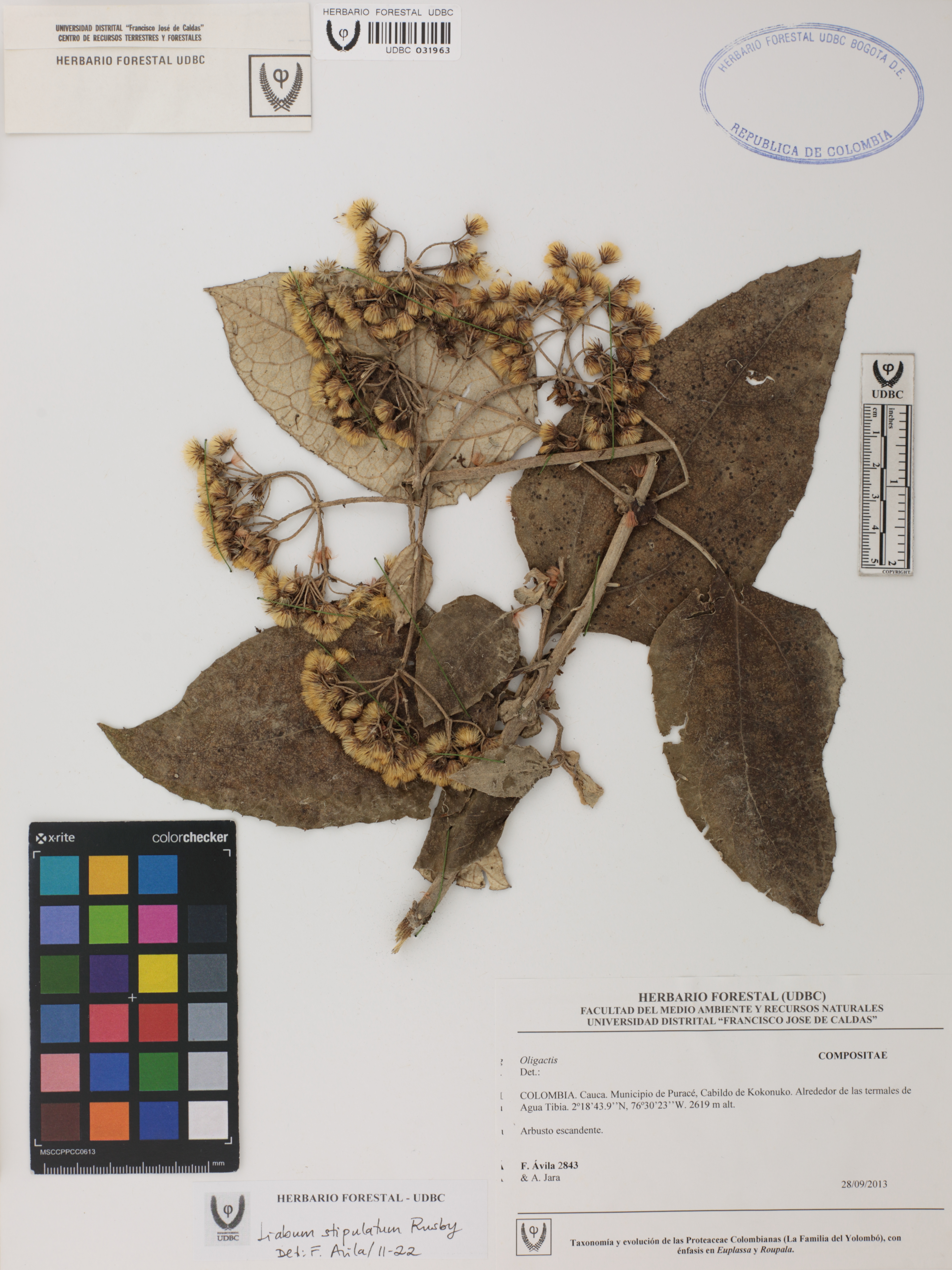 Fotografía del ejemplar Ávila, F. 2843, determinado como Liabum stipulatum en el año 2022