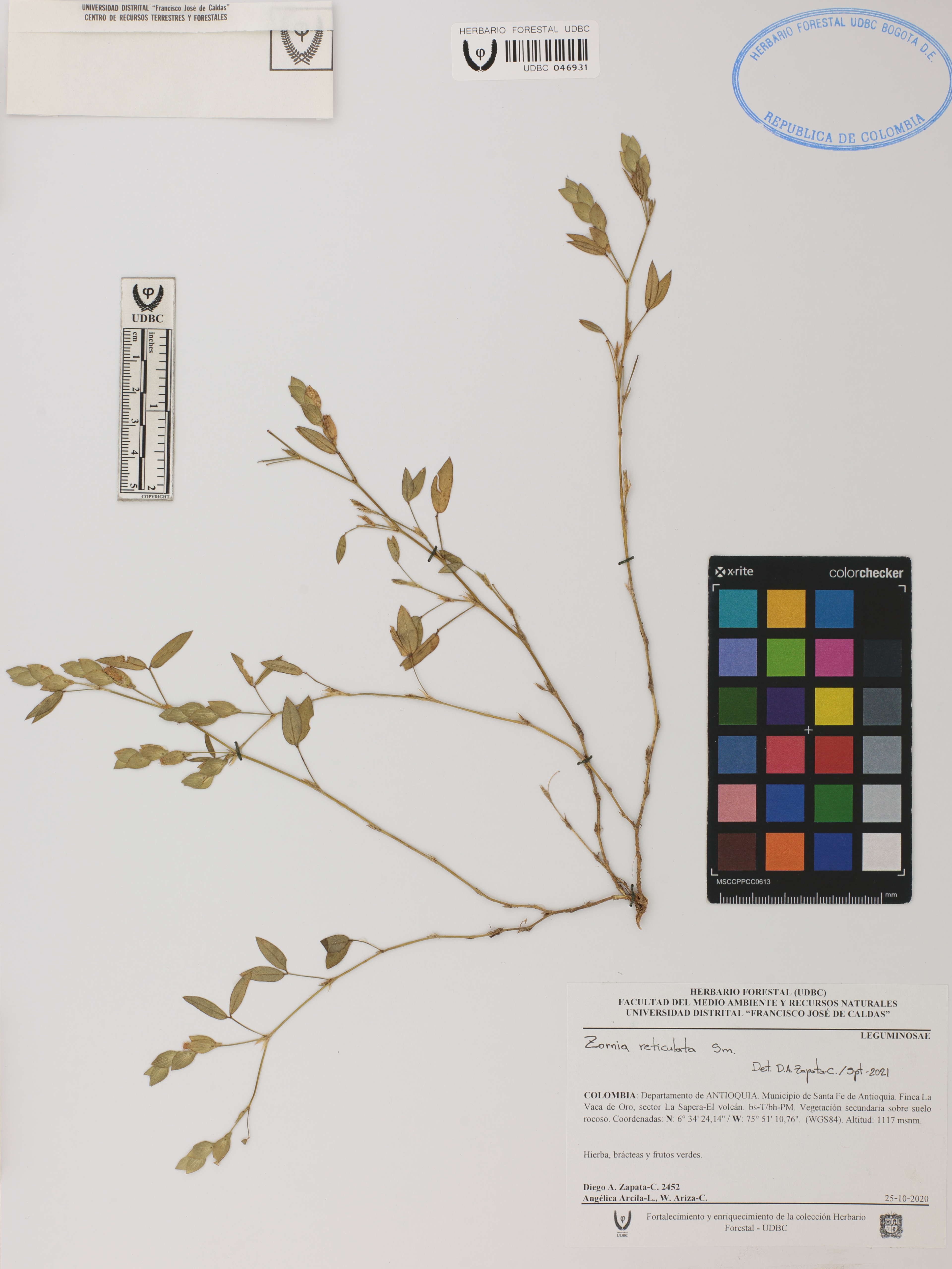 Fotografía del ejemplar Zapata-C., D. 2452, determinado como Zornia reticulata en el año 2021