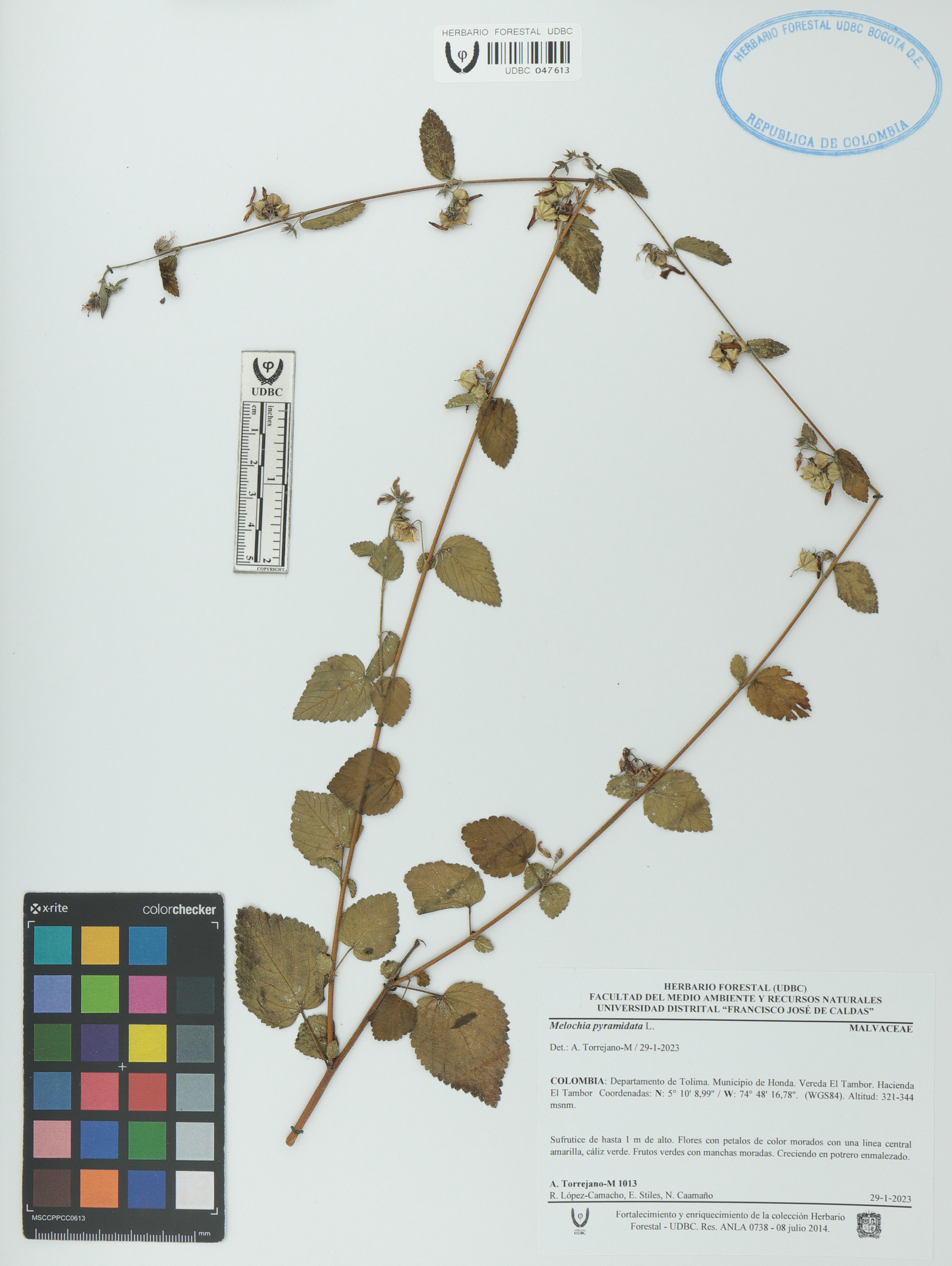 Fotografía del ejemplar Torrejano-M., A. 1013, determinado como Melochia pyramidata en el año 2023