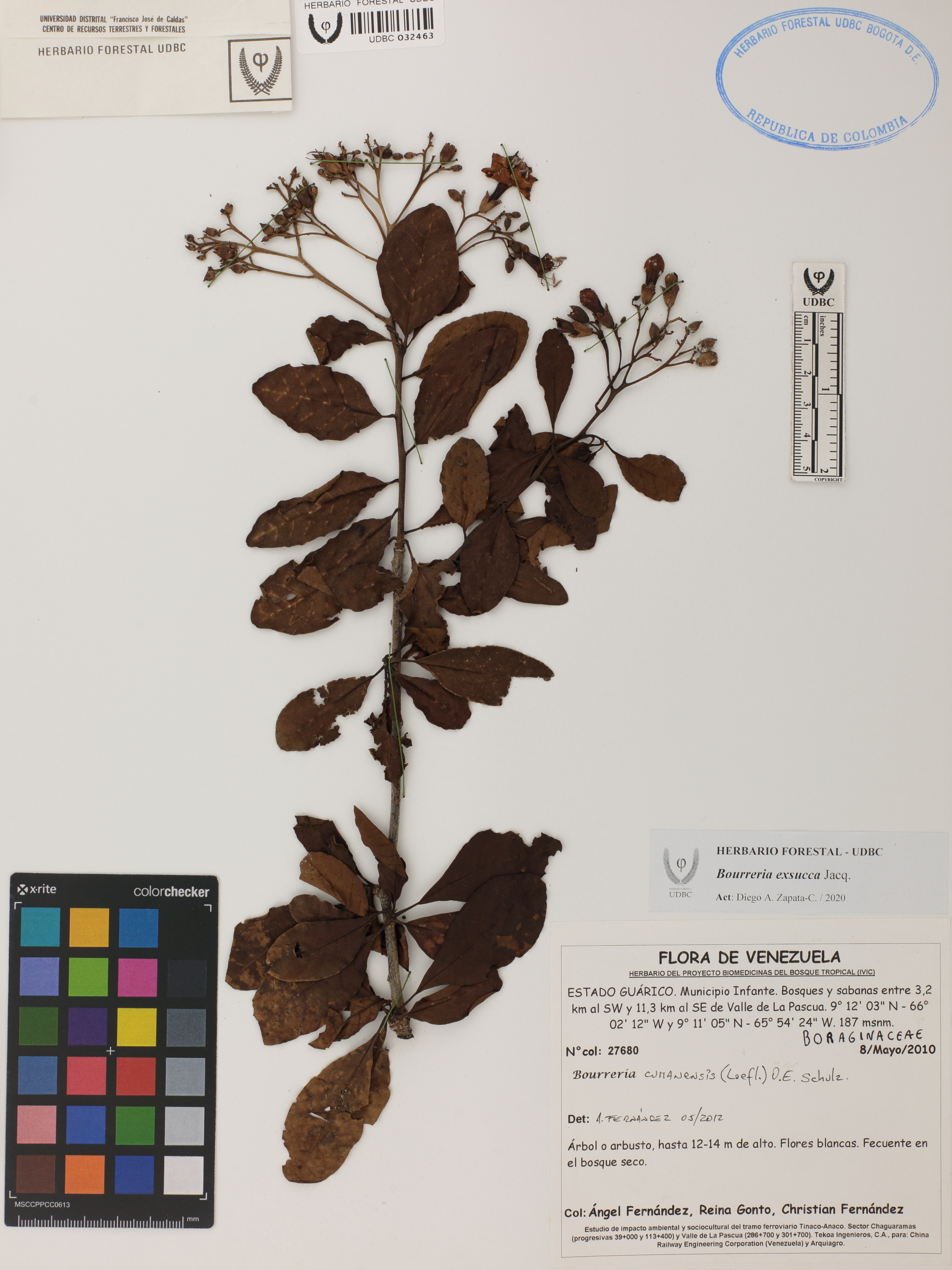 | dc.description | Fotografía del ejemplar Fernández, A. 27680, determinado como Bourreria exsucca en el año 2012 | |