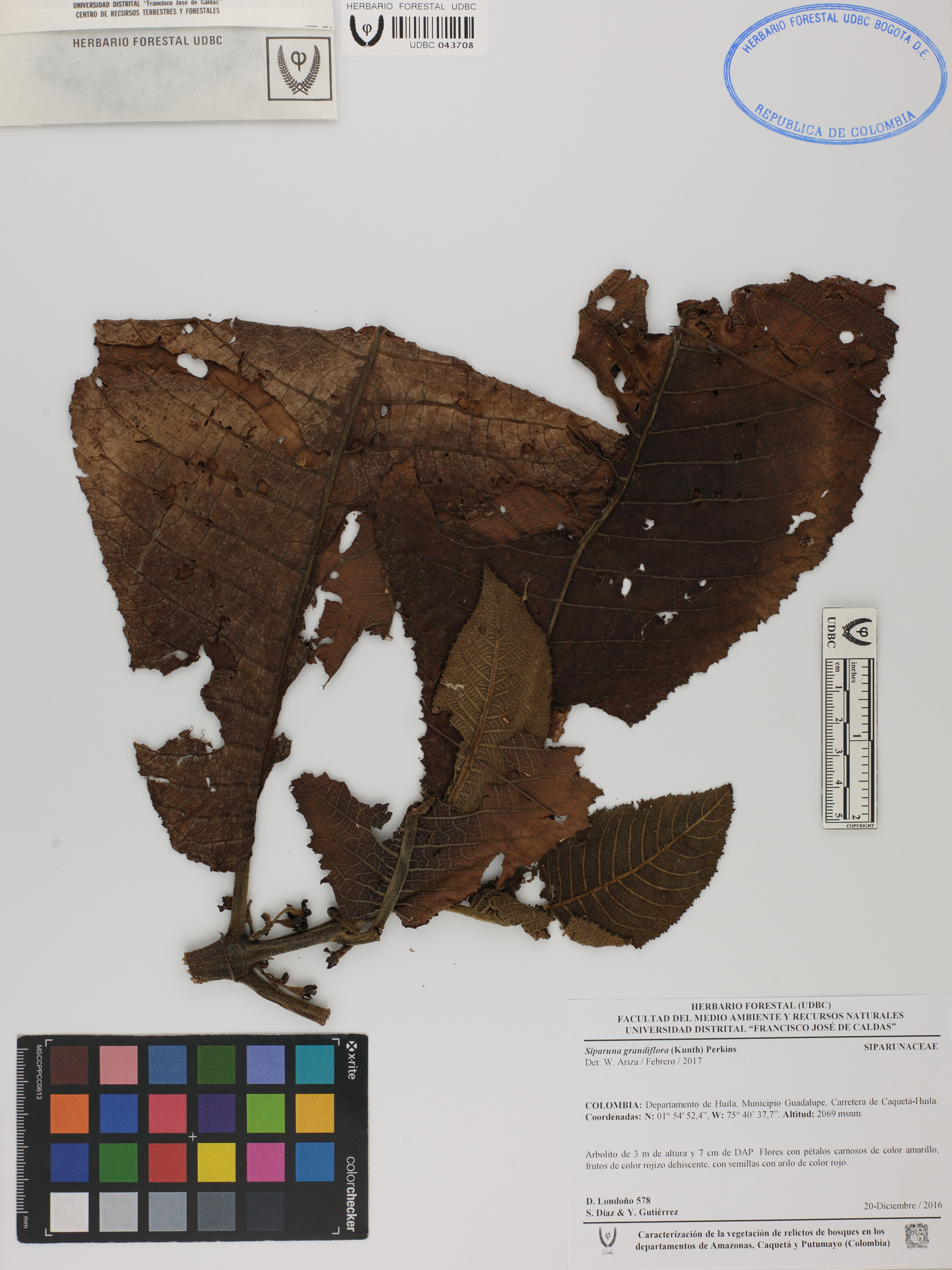 | dc.description | Fotografía del ejemplar Londoño, D. 578, determinado como Siparuna grandiflora en el año 2017 | |