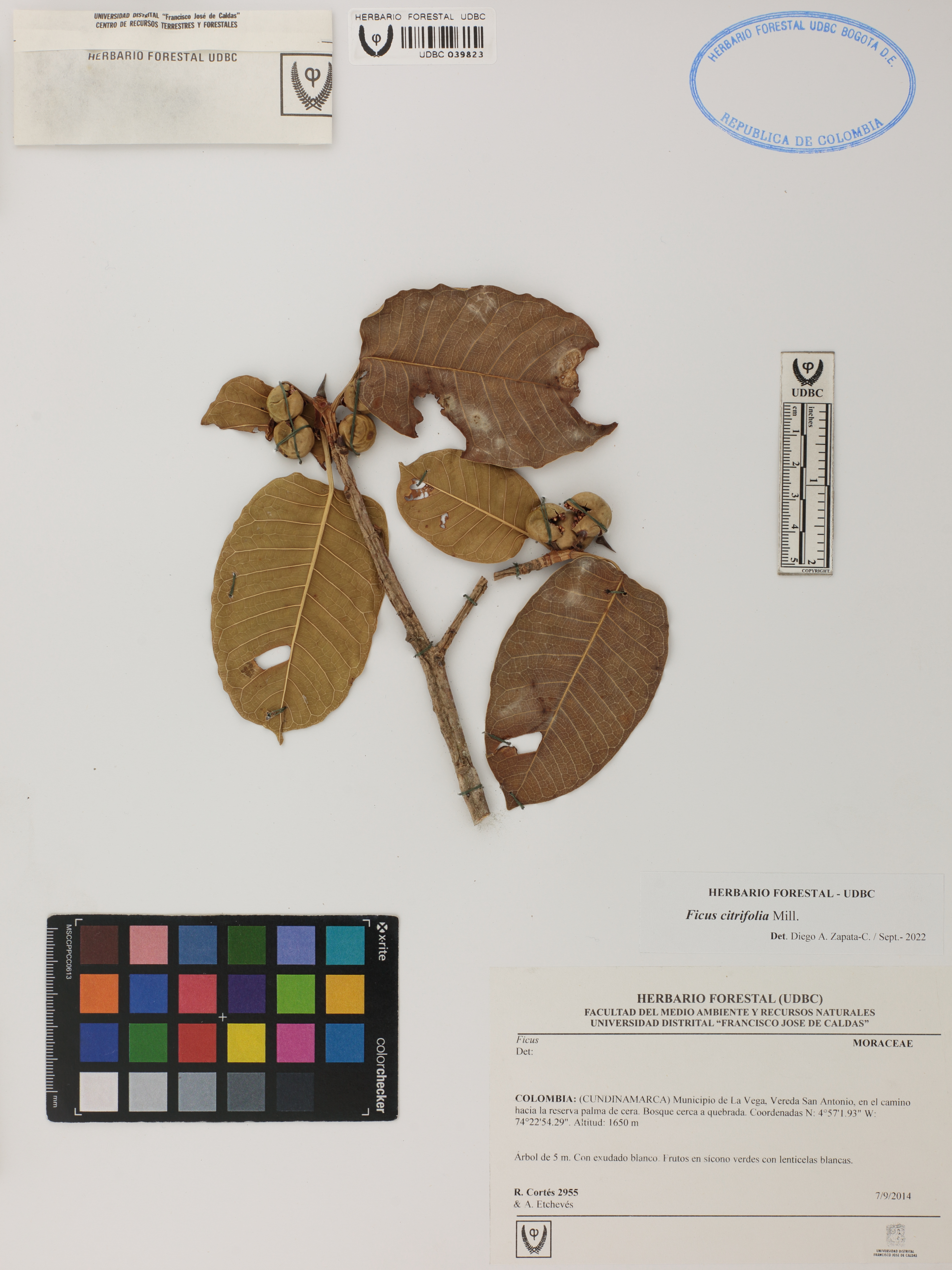 Fotografía del ejemplar Cortés, R. 2955, determinado como Ficus citrifolia en el año 2022