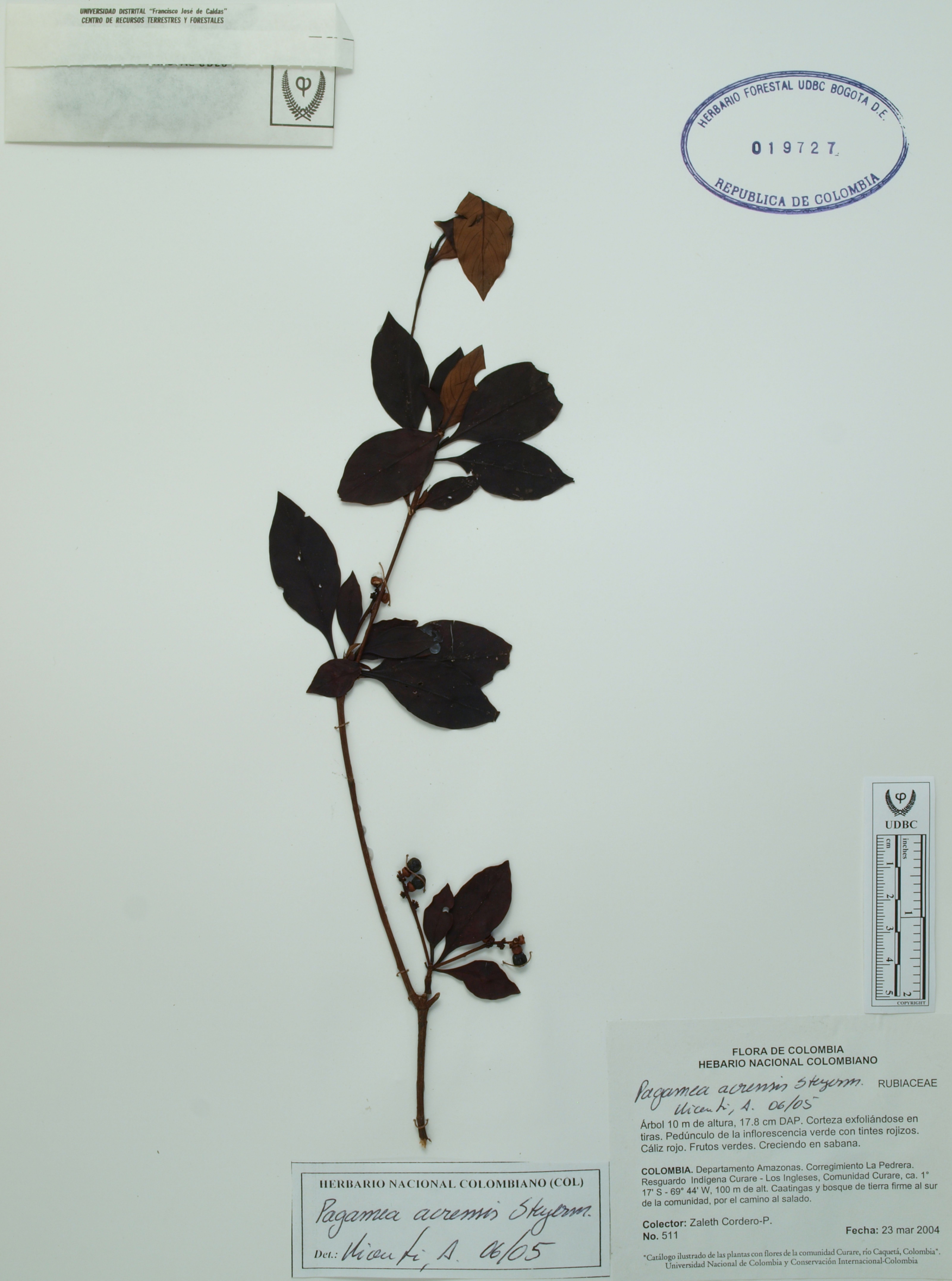 Fotografía del ejemplar Cordero, Z. 511, determinado como Pagamea acrensis en el año 2005