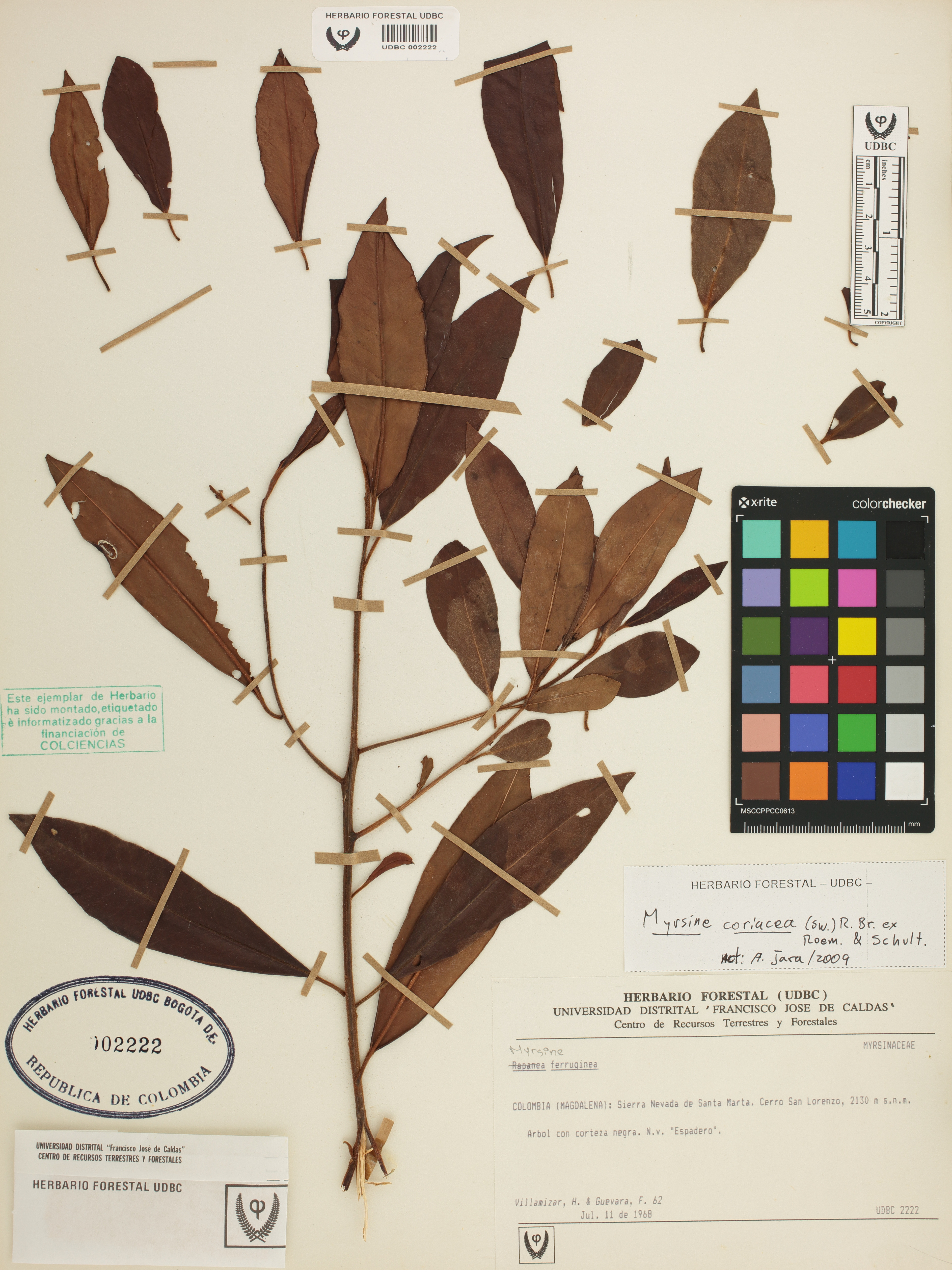 Fotografía del ejemplar Villamizar, H. 62, determinado como Myrsine coriacea