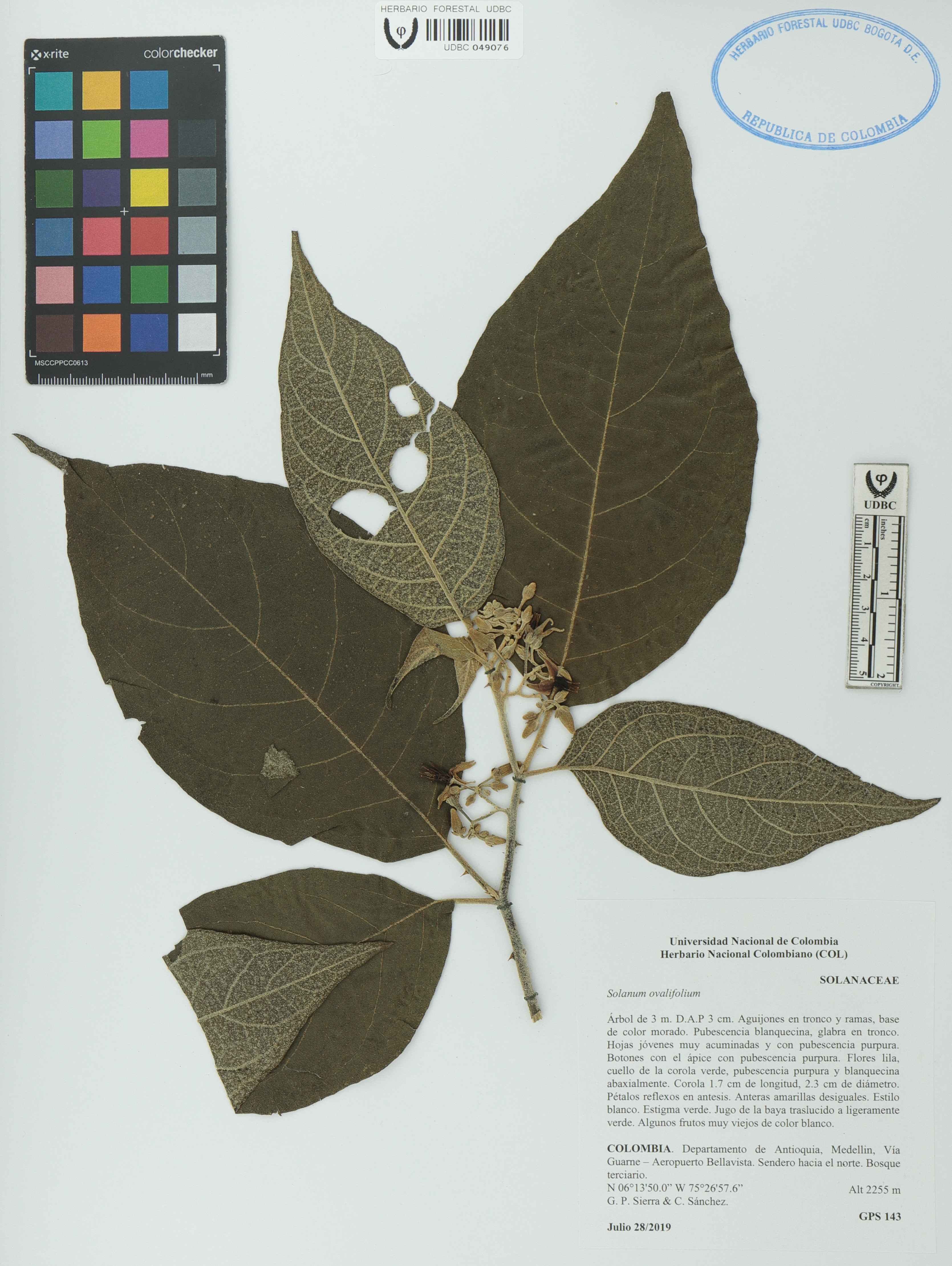 Fotografía del ejemplar Sierra, G. 143, determinado como Solanum ovalifolium