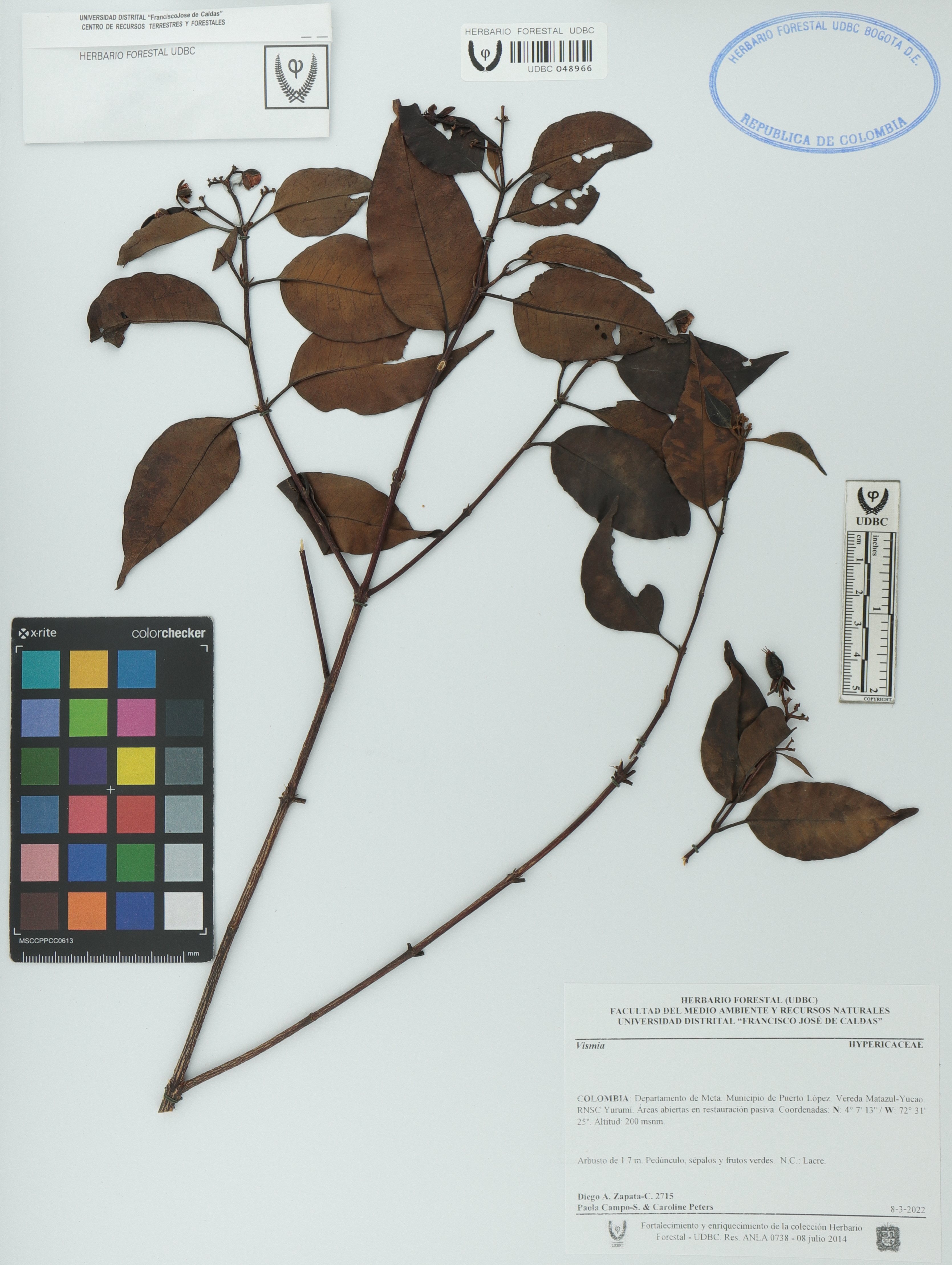 Fotografía del ejemplar Zapata-C., D. 2715, determinado como Vismia cayennensis en el año 2024