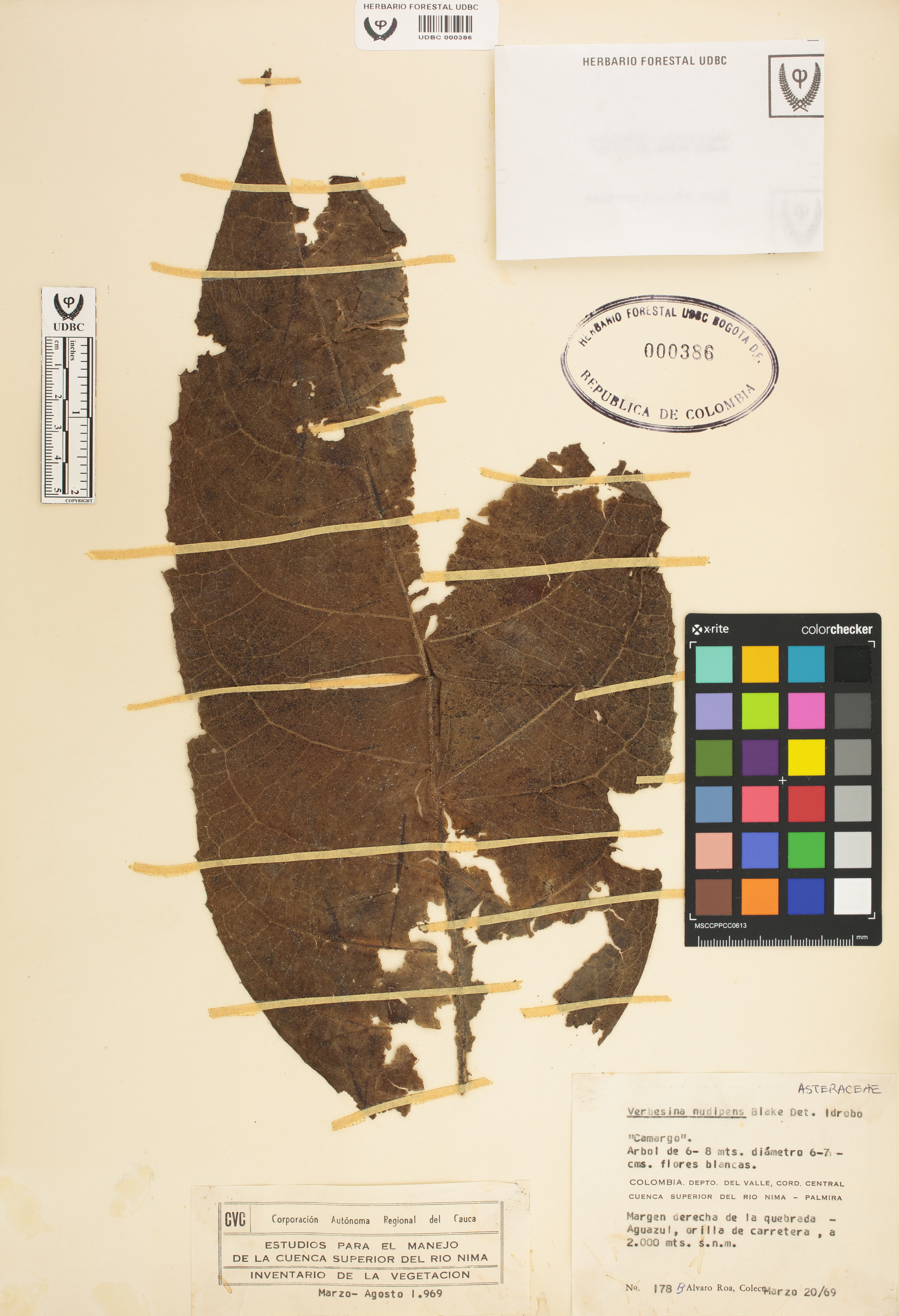 Fotografía del ejemplar Roa, A. 178, determinado como Verbesina nudipes en el año 1969