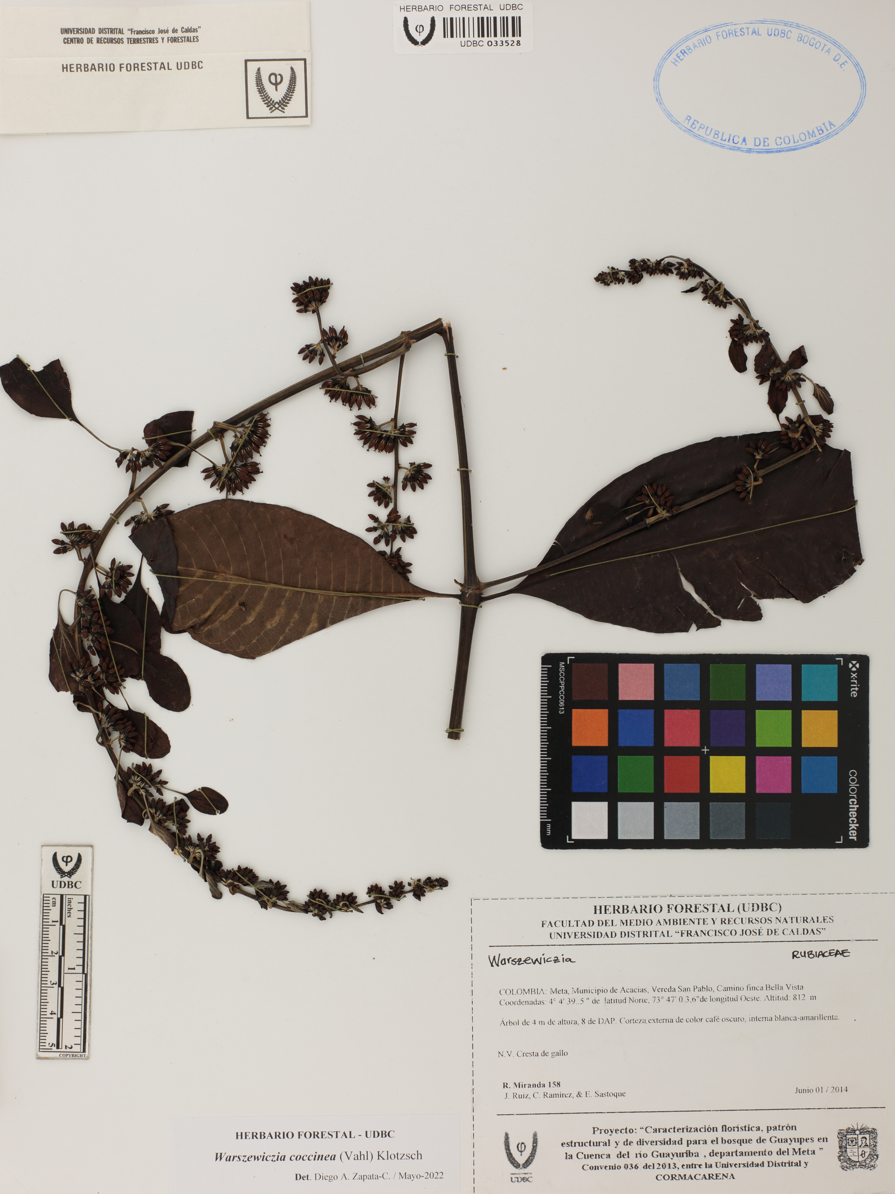 Fotografía del ejemplar Miranda, R. 158, determinado como Warszewiczia coccinea en el año 2022