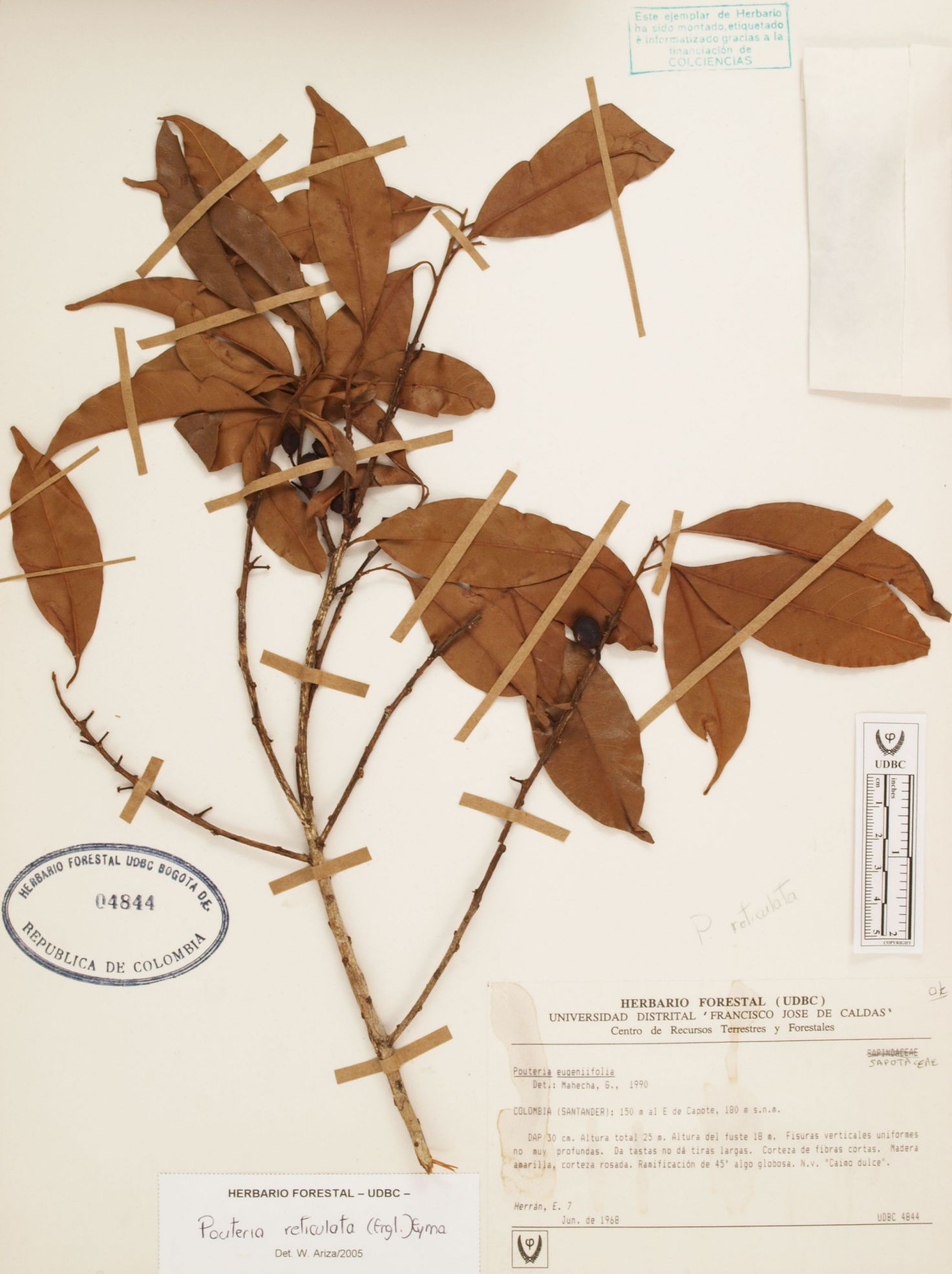 Fotografía del ejemplar Herrán, E. 7, determinado como Pouteria reticulata en el año 2005