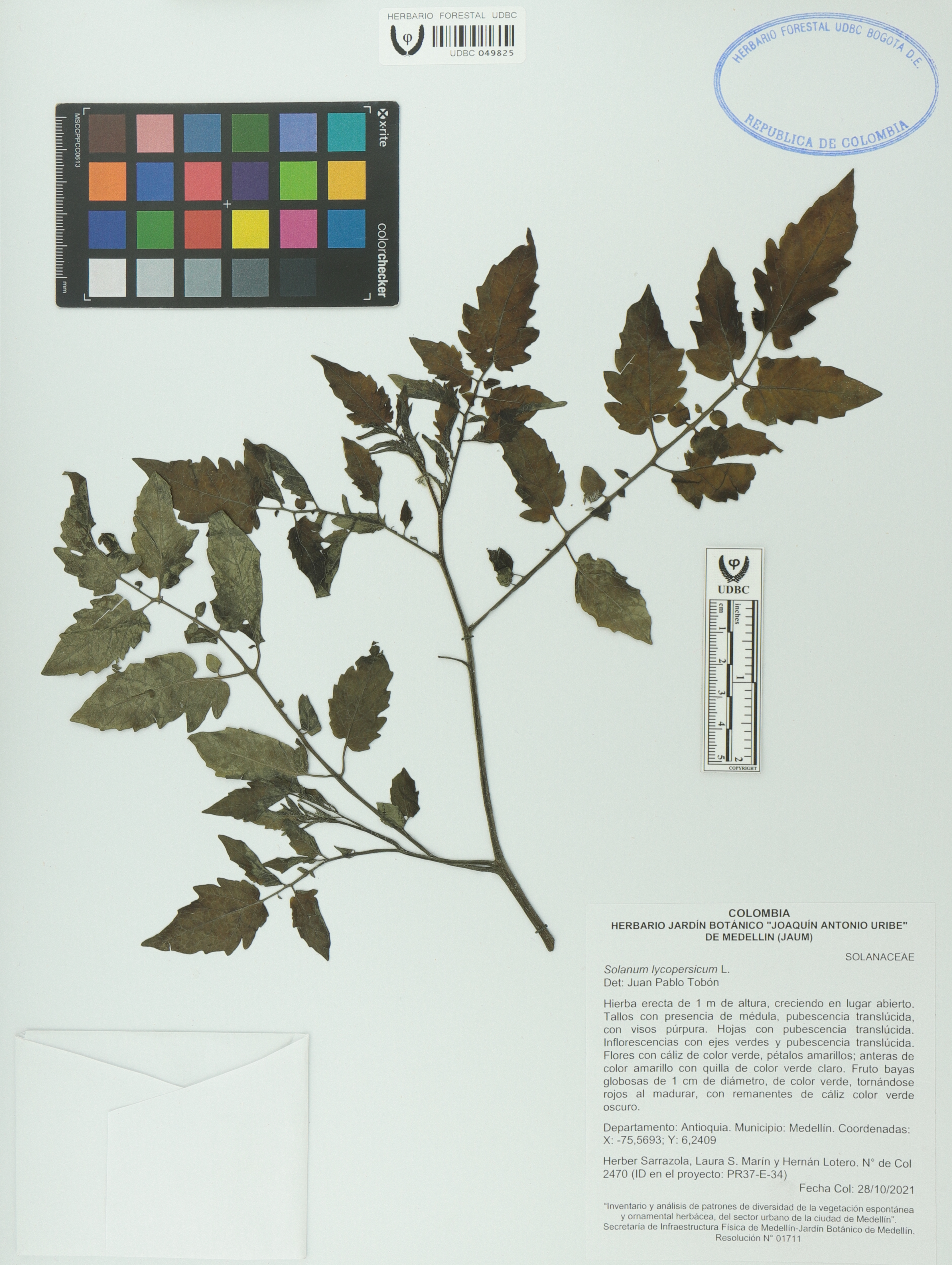 Fotografía del ejemplar Sarrazola, H. 2470, determinado como Solanum lycopersicum