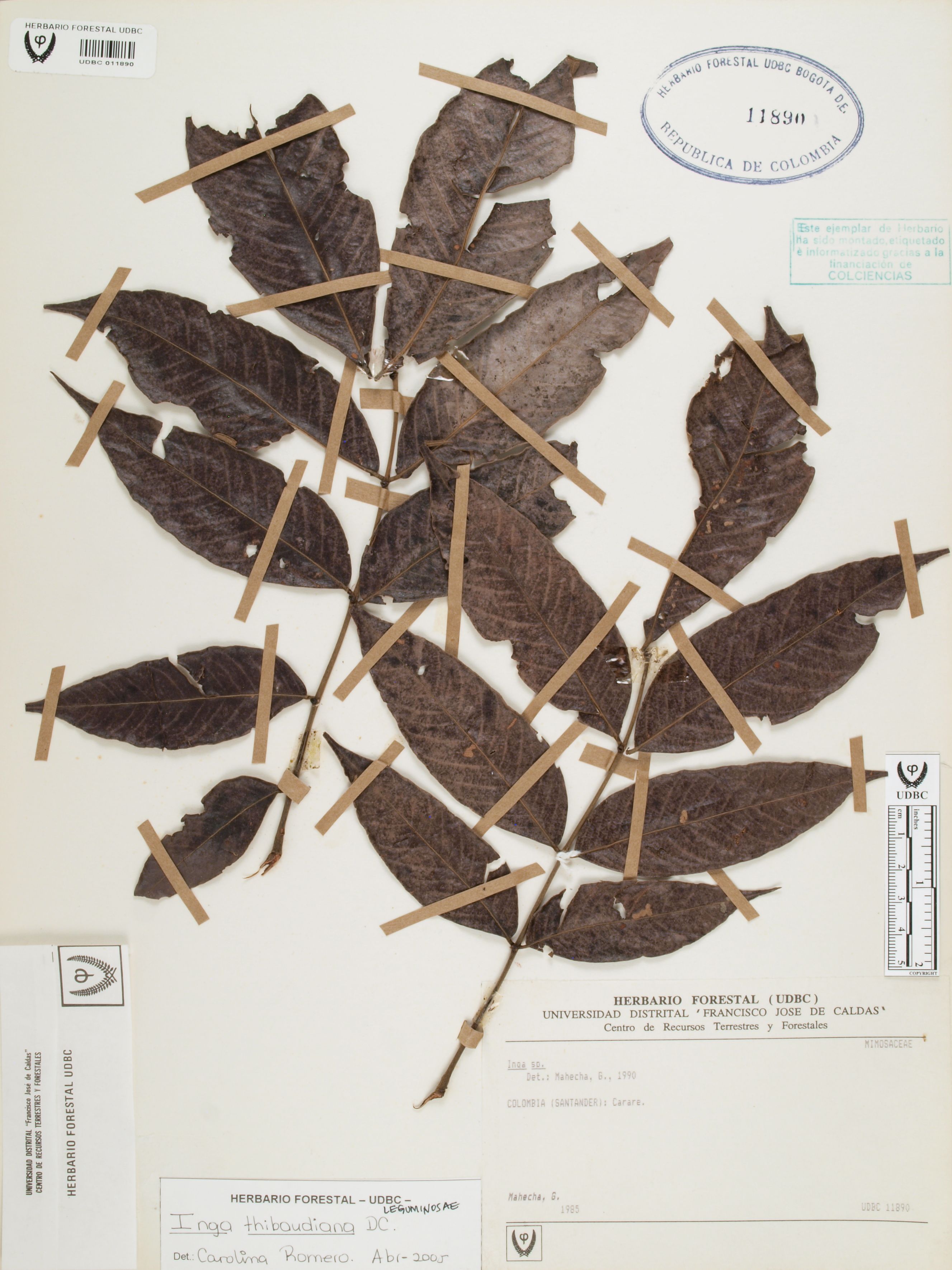 Fotografía del ejemplar Mahecha, G., determinado como Inga thibaudiana en el año 2005