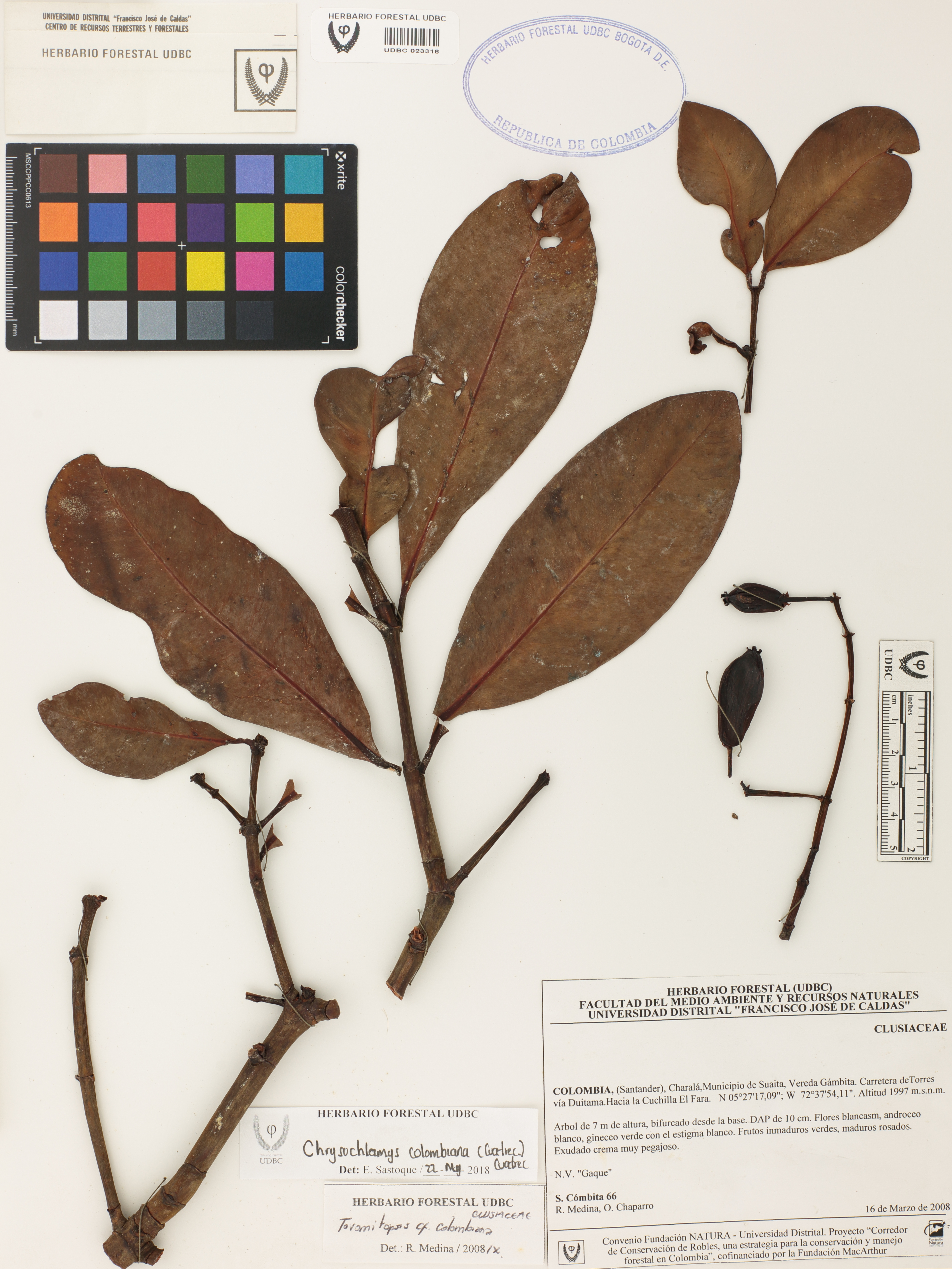 Fotografía del ejemplar Cómbita, S. 66, determinado como Chrysochlamys colombiana en el año 2008