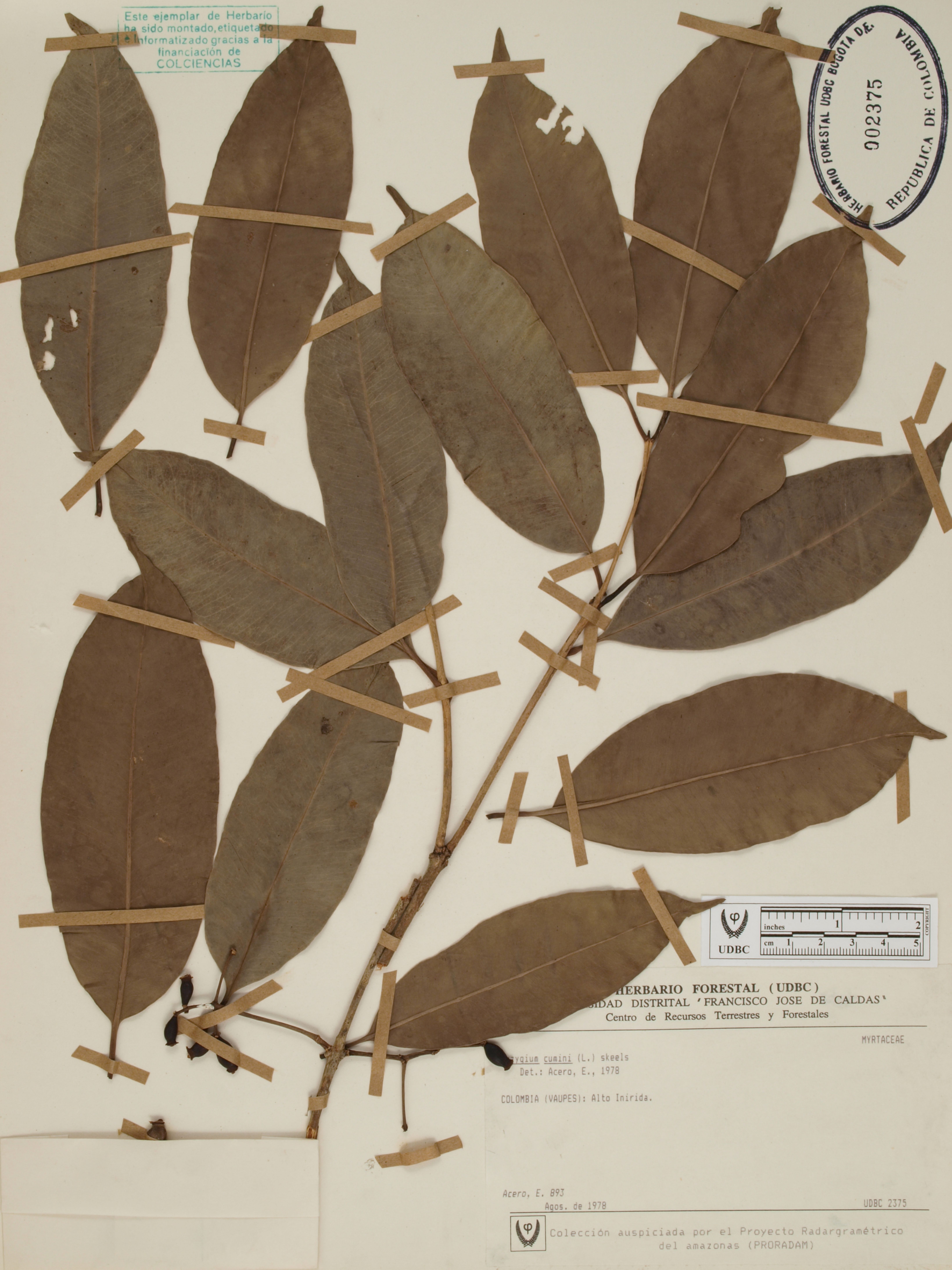 Fotografía del ejemplar Acero, E. 893, determinado como Syzygium cumini en el año 1978